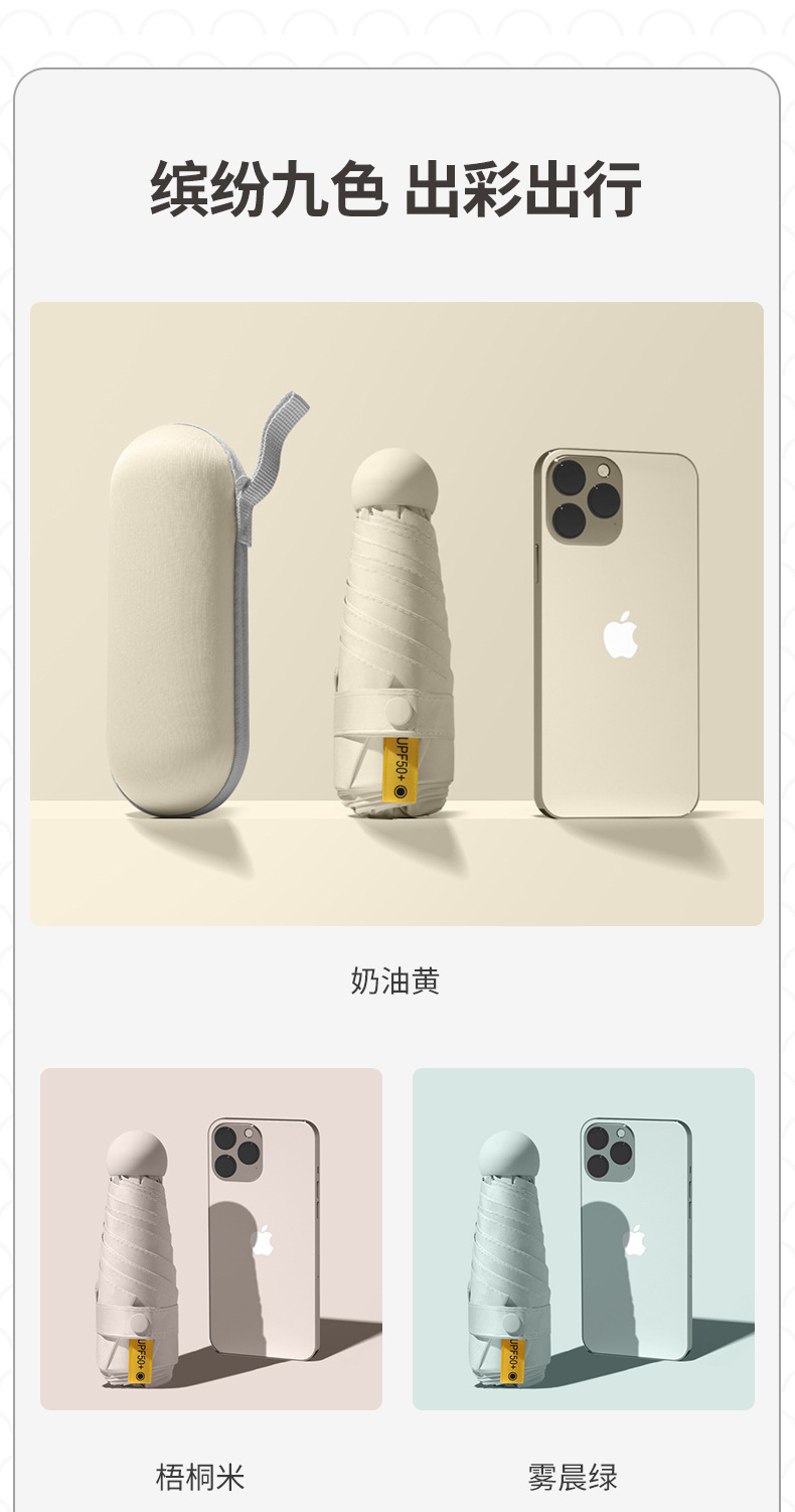 morning mist green-14cm black rubber umbrella + box