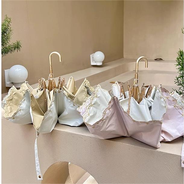 three-fold golden curved handle color plastic embroidery xingx creamy-white