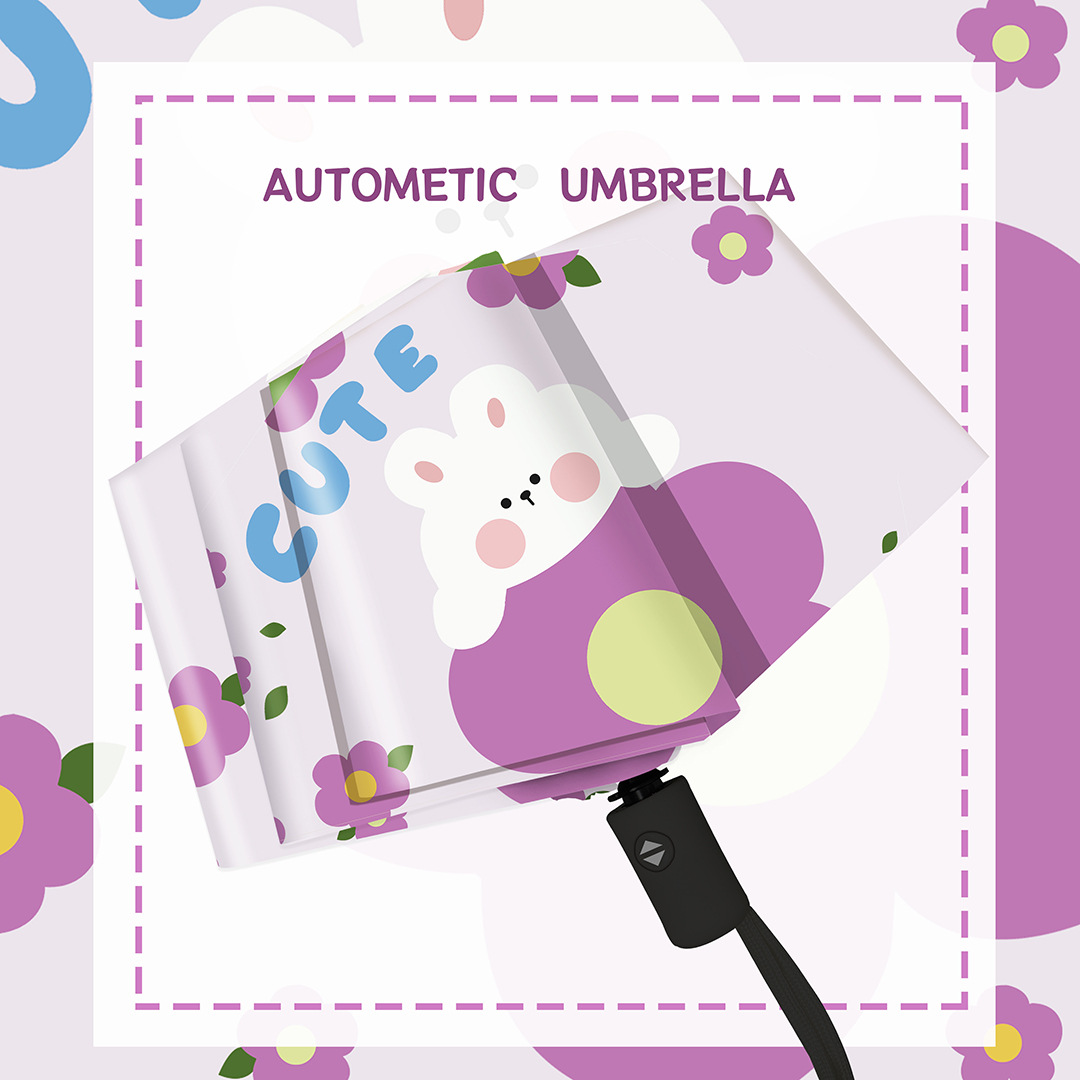 purple pattern rabbit. self-opening umbrella
