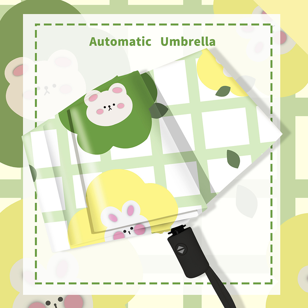 green plaid rabbit. self-opening umbrella