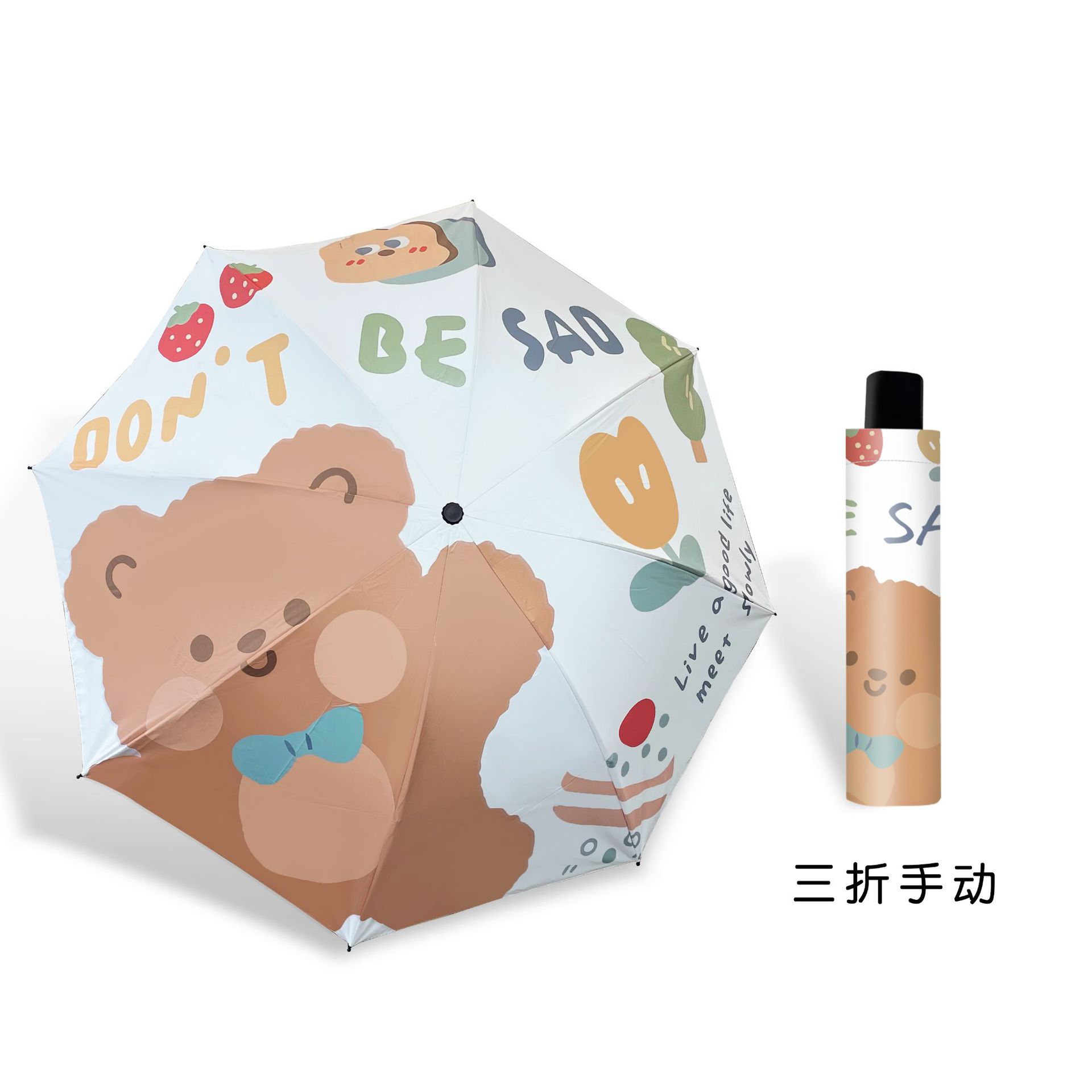 khaki cartoon bear. manual umbrella
