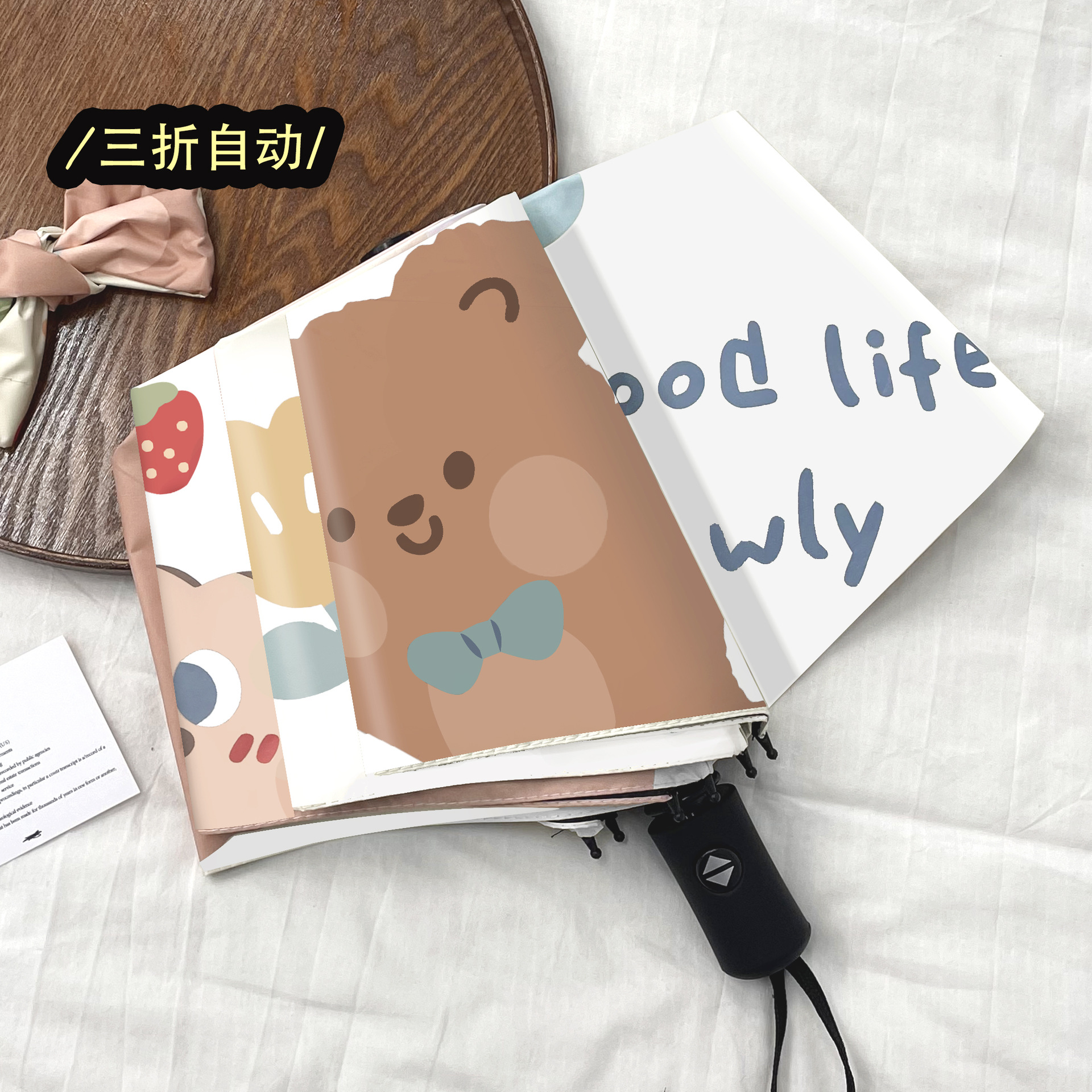 white strawberry rabbit. self-opening umbrella