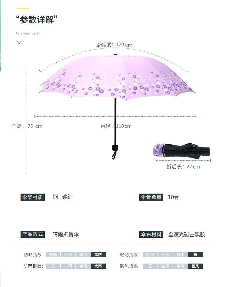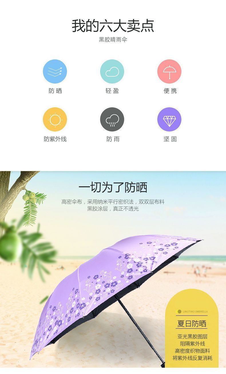 ♥❤a pair of black glue, sunny and rainy, folding umbrella❧...♦