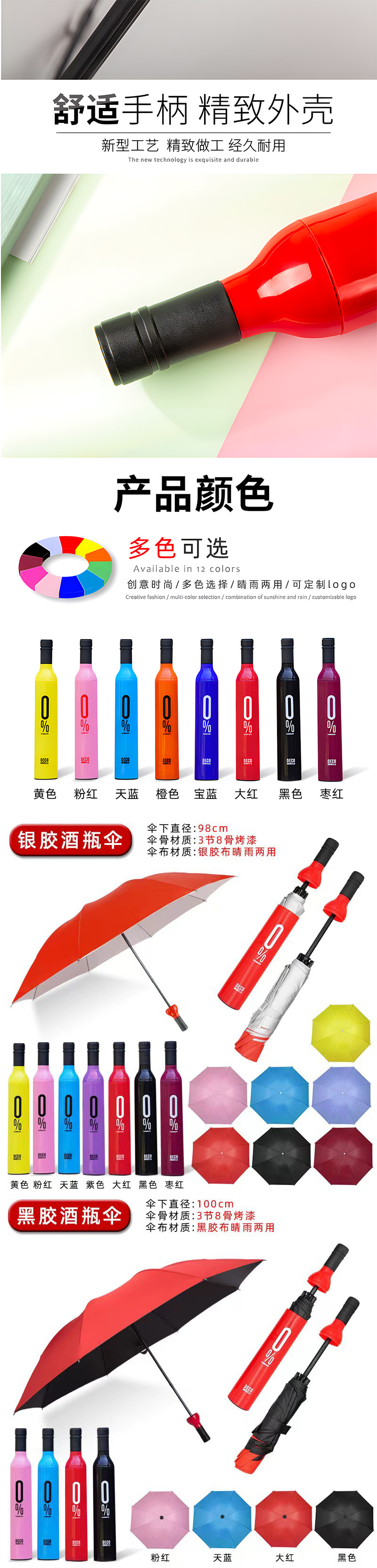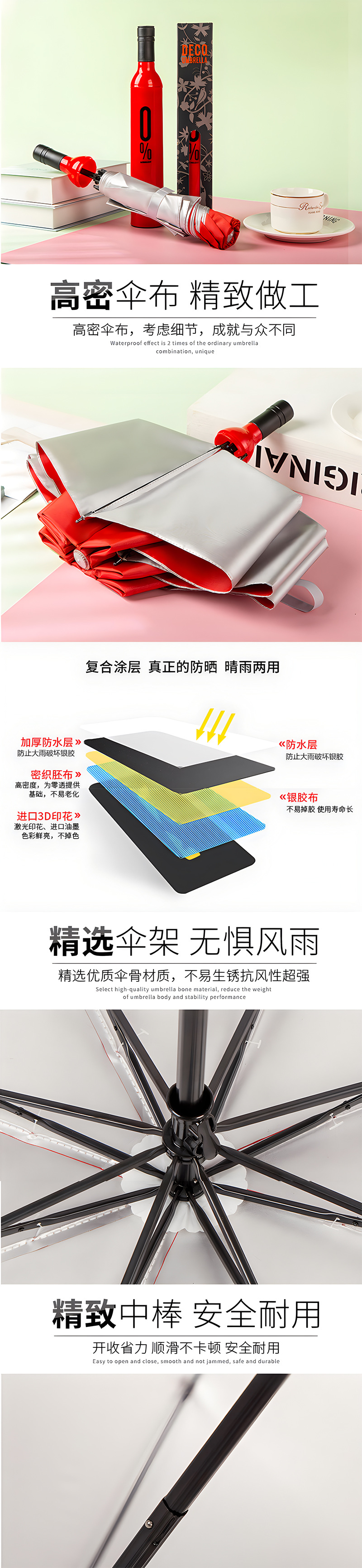 8k thin rod (3 bars silver glue) wine bottle umbrella