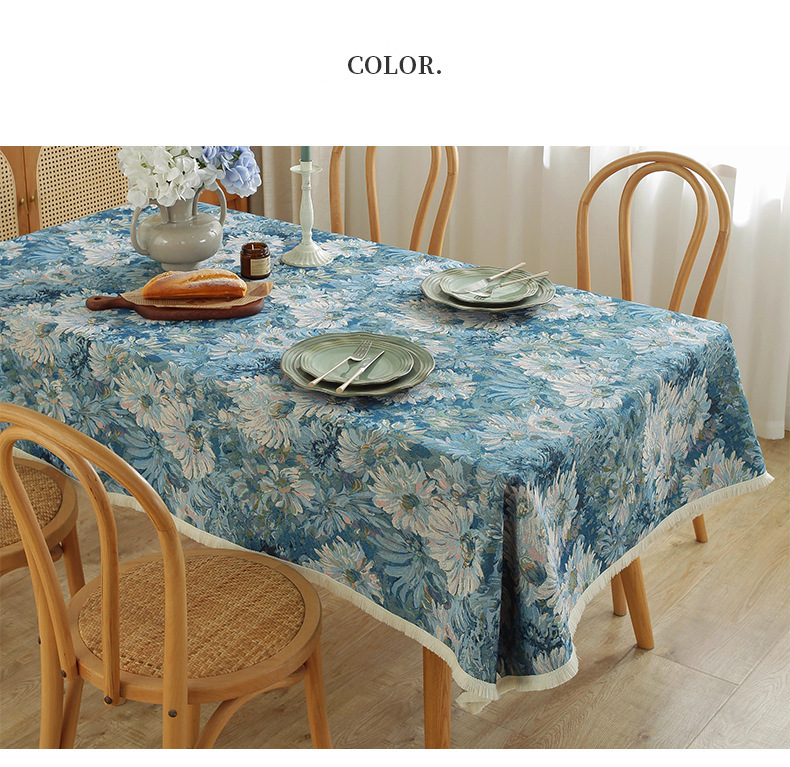 jujia new pastoral color oil painting yarn-dyed american jacquard cotton and linen thickened tablecloth coffee table cloth wholesale