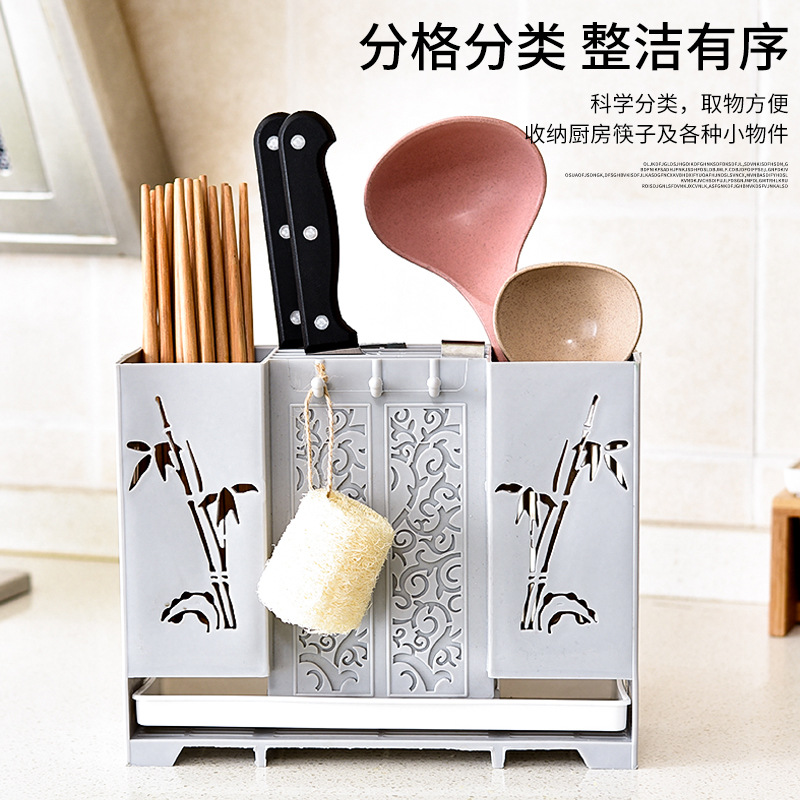 bamboo blade with knife rest punch-free chopsticks box creamy-white