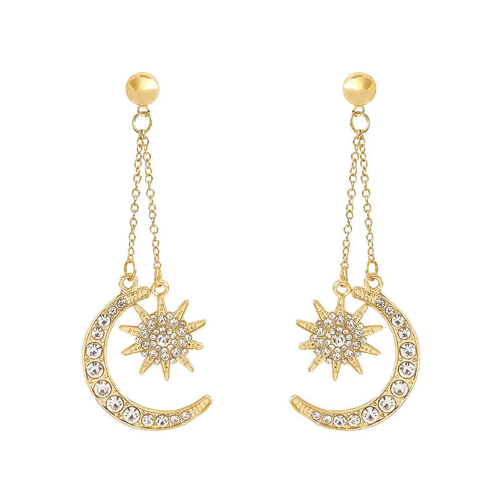 eh005 six-pointed star moon long earrings