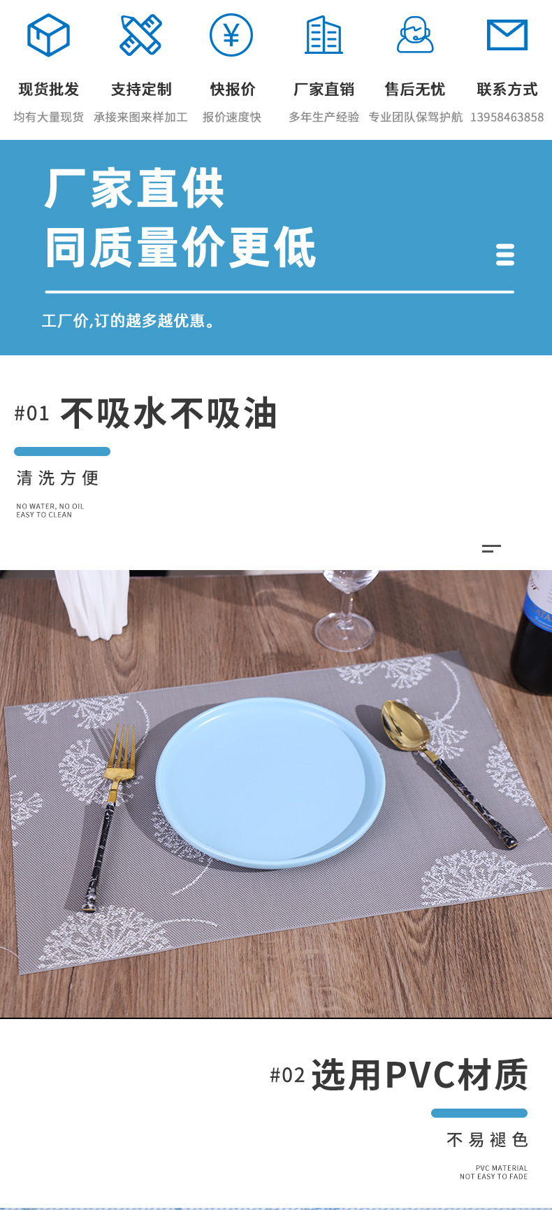 modern simple table mat lunch insulation rectangular children table cloth student dandelion pvc placemat wholesale