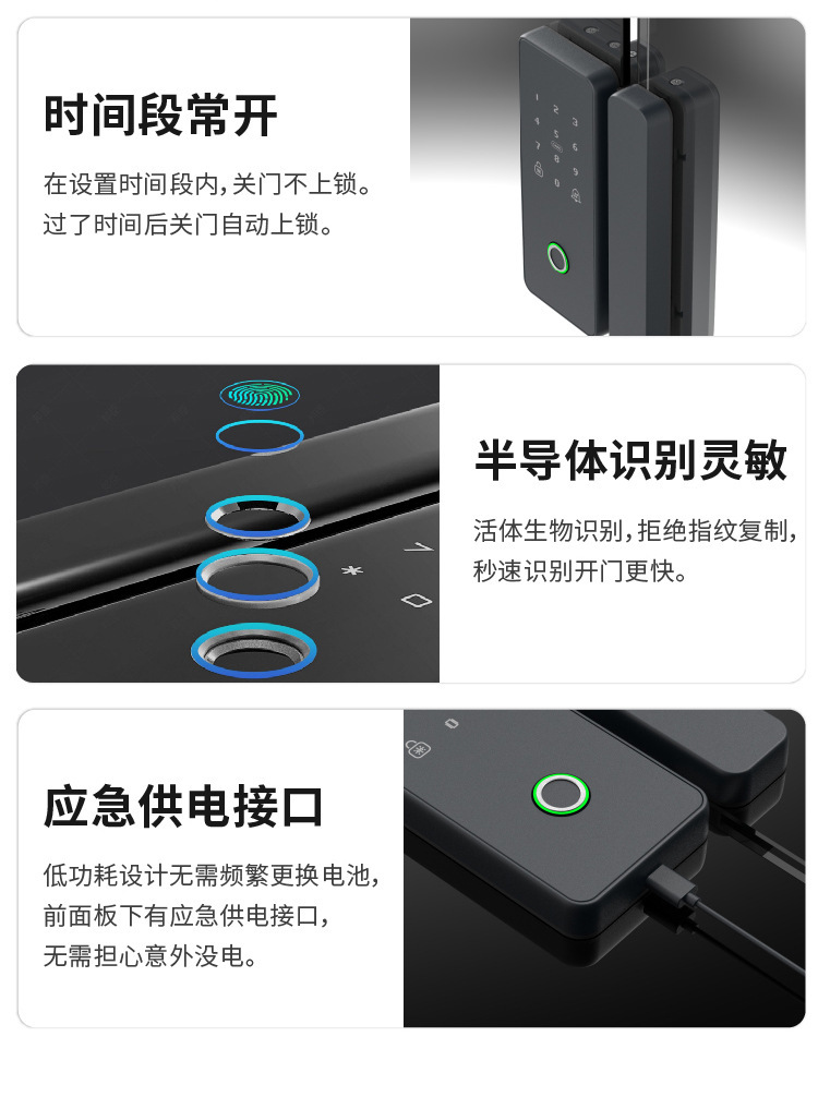 os138fb frameless double open lock/fingerprint/card/password
