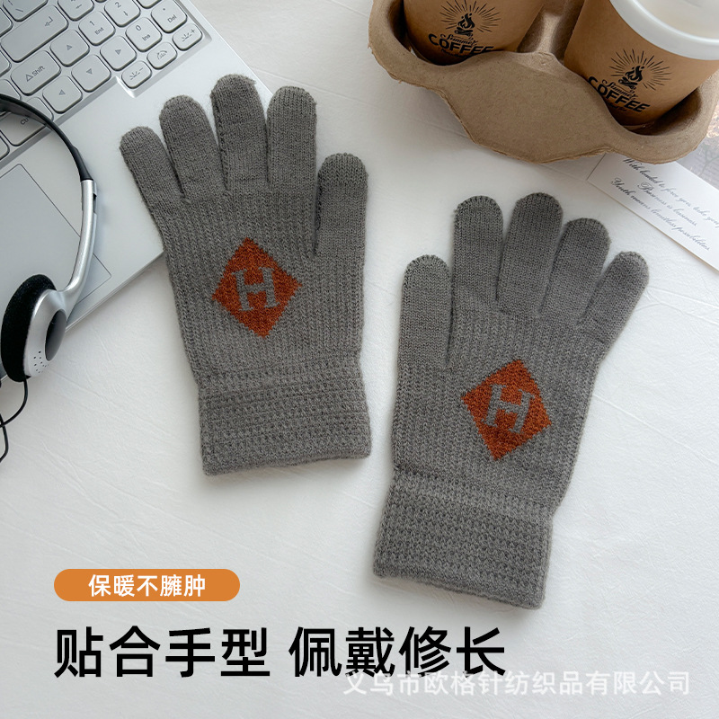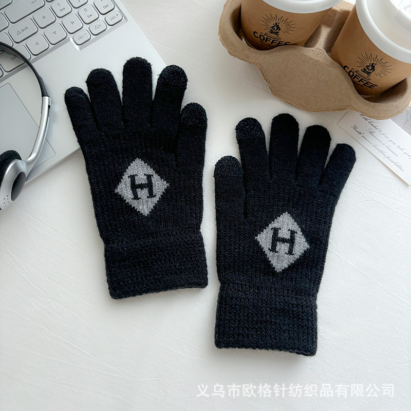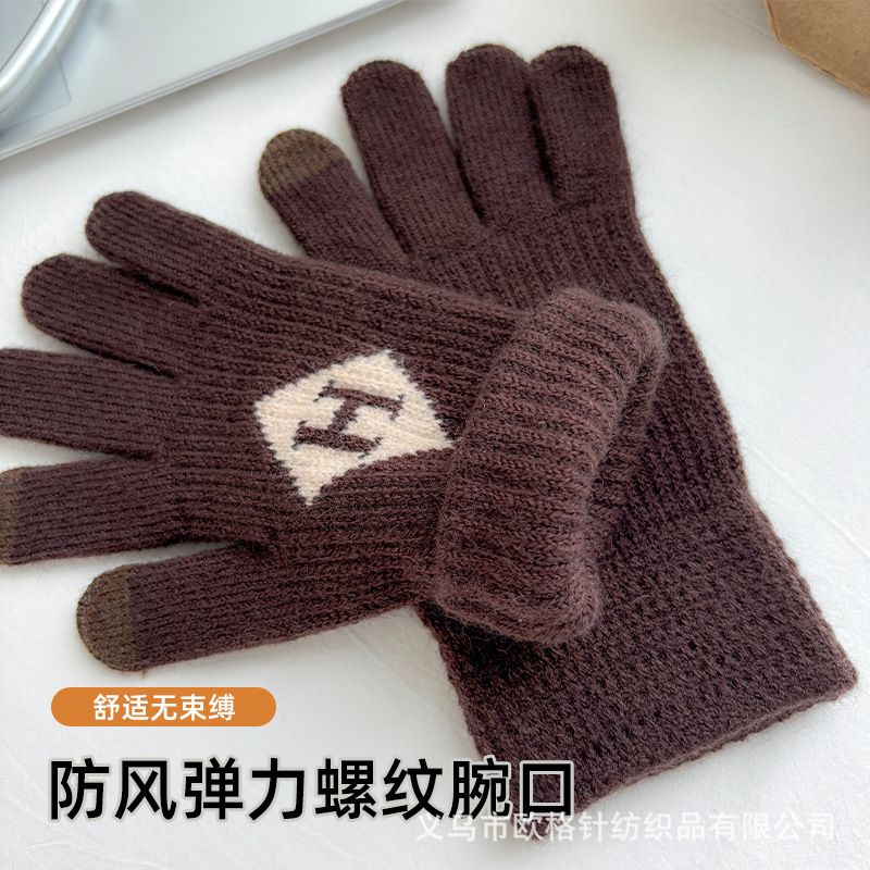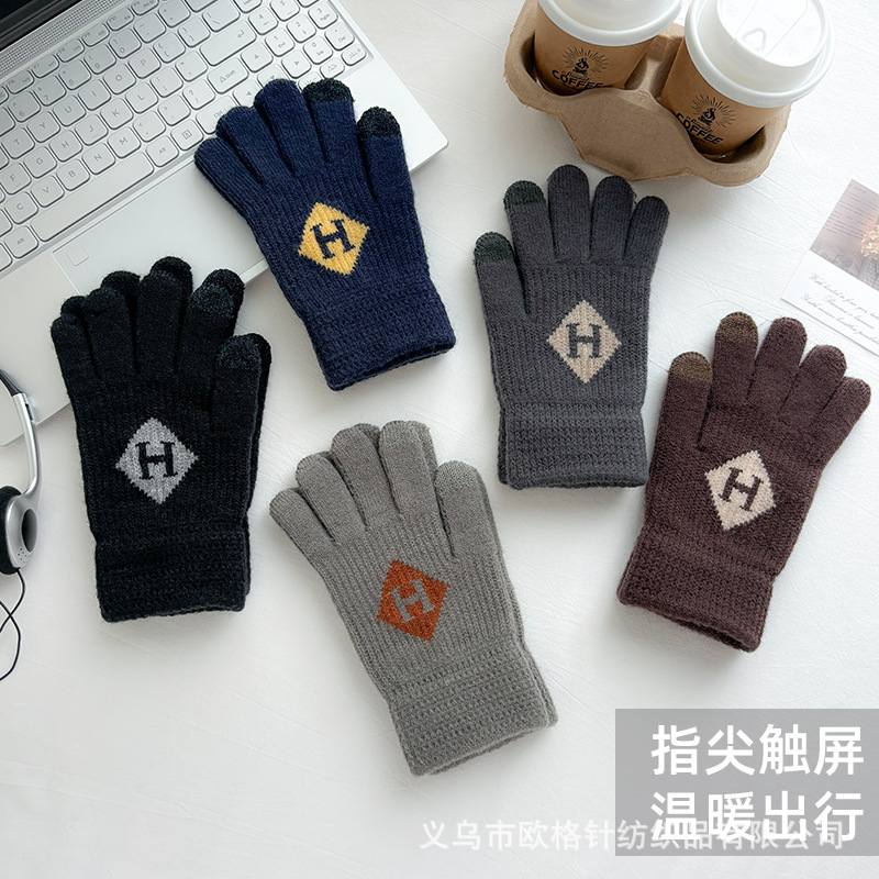 factory direct sales winter warm touch screen five finger knitted gloves men's outdoor fitness warm keeping sports