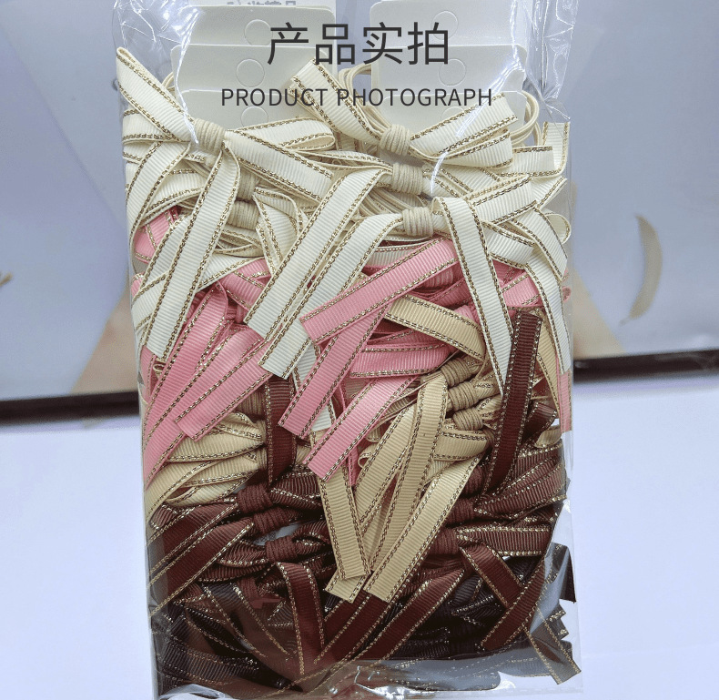 milk tea color golden edge bow tie ribbon (2 pieces/card)