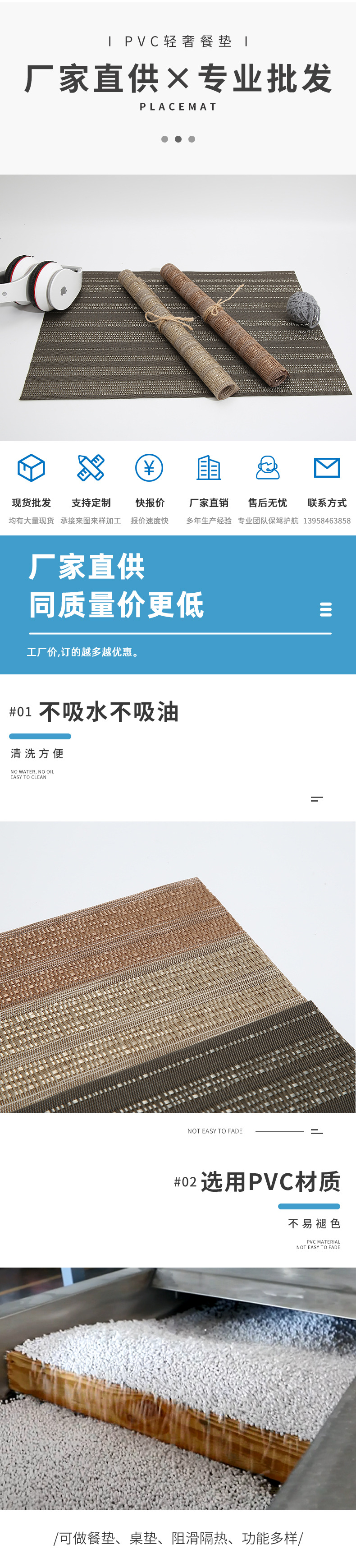 wholesale insulated placemat fresh striped texlin jacquard home dining table simple table mat pvc western food