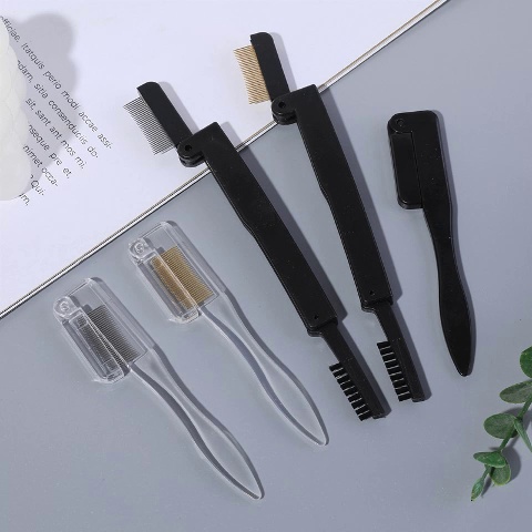 Steel-toothed comb with extremely thin head, eyebrows comb, female portable folding steel tooth small eyelash combing brush