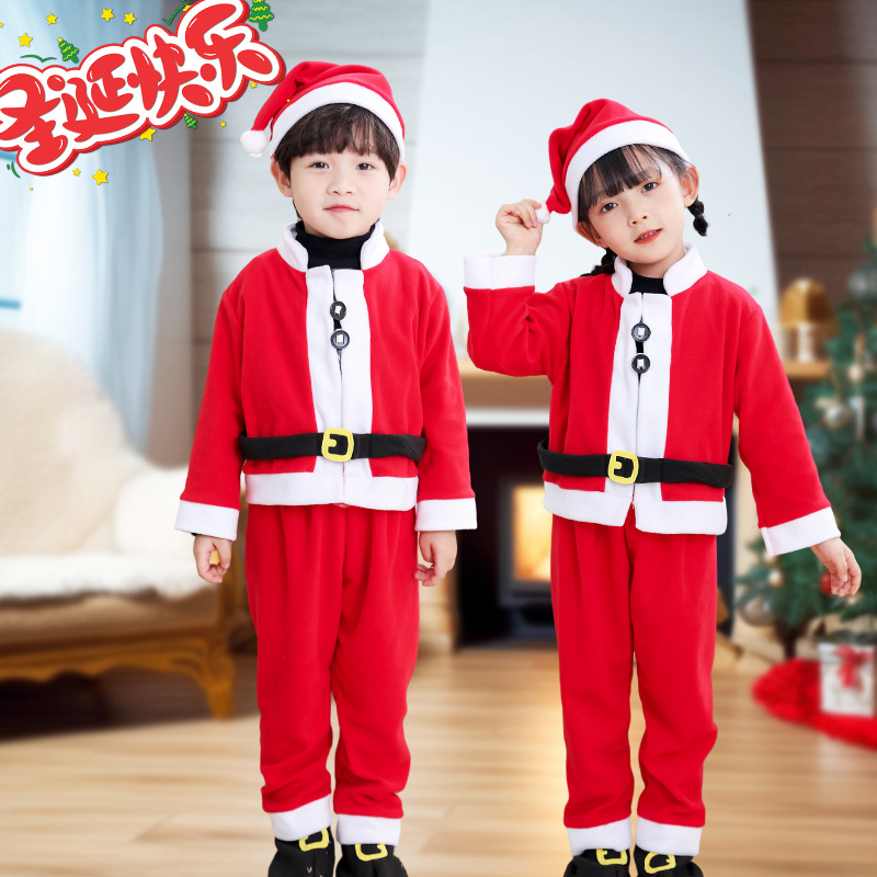 Cross-border new arrival Christmas children's clothing polar fleece kindergarten performance clothing Santa Claus clothes dress up