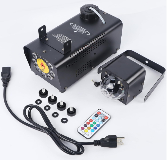 【Fog machine with 9 LED lights 360 ° rotation】stage disco light smoke machine built-in LED lights can rotate 360 degrees, creating a charming dynamic illuminated display, enhancing the atmosphere of any activity. Various color options, including RGB (red, green, blue) and more multicolor settings. 4 lighting modes, such as Flash, fade, jump, racing and color changing effect. Our professional fog machine with party lights can make your party interesting, colorful and stunning