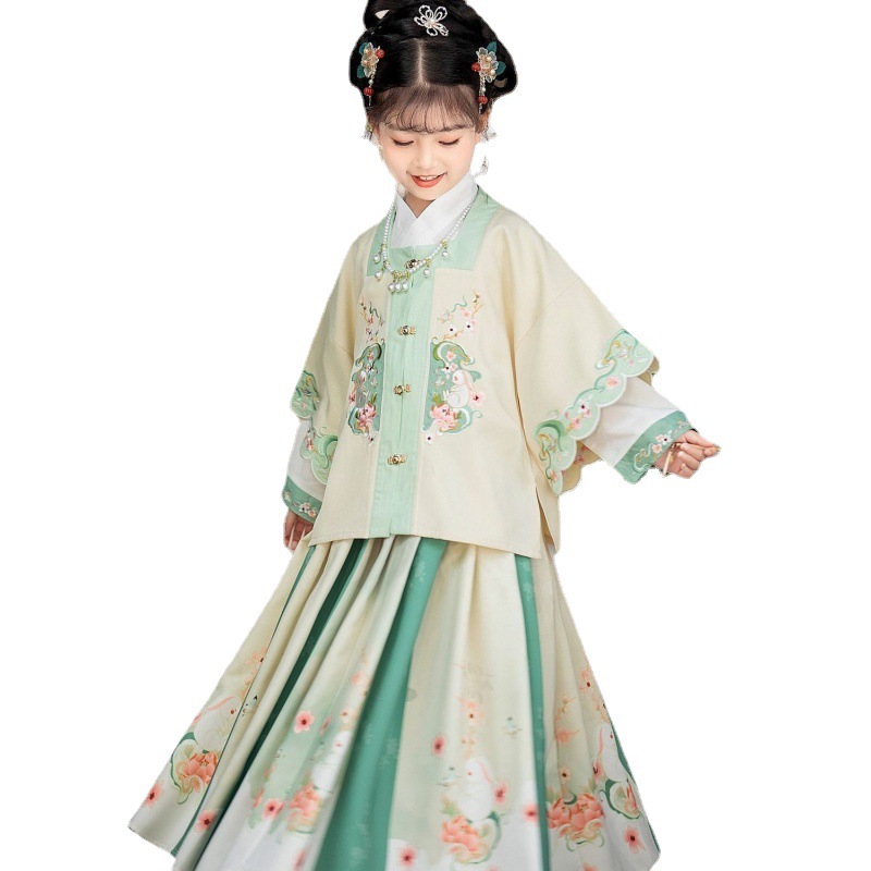 Spring and Autumn Hanfu Girls' New Embroidered Chinese Style Children's Daily Improved Ancient Costume Ming-Made Horse-Face Skirt Women's Treasure Tang Suit