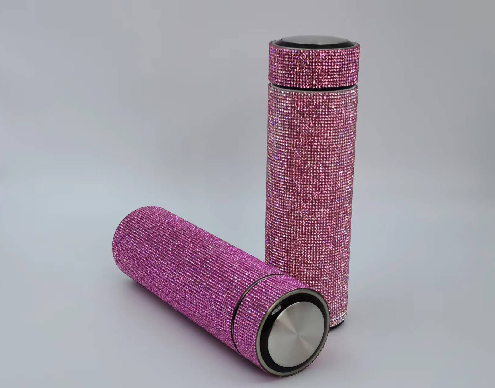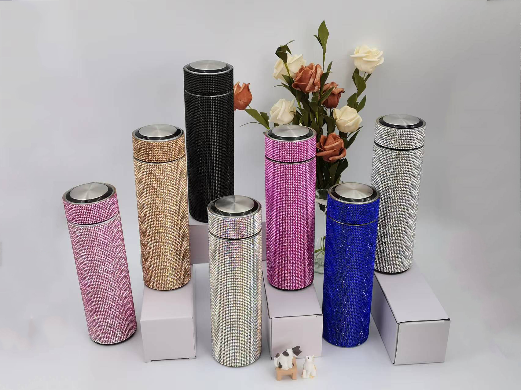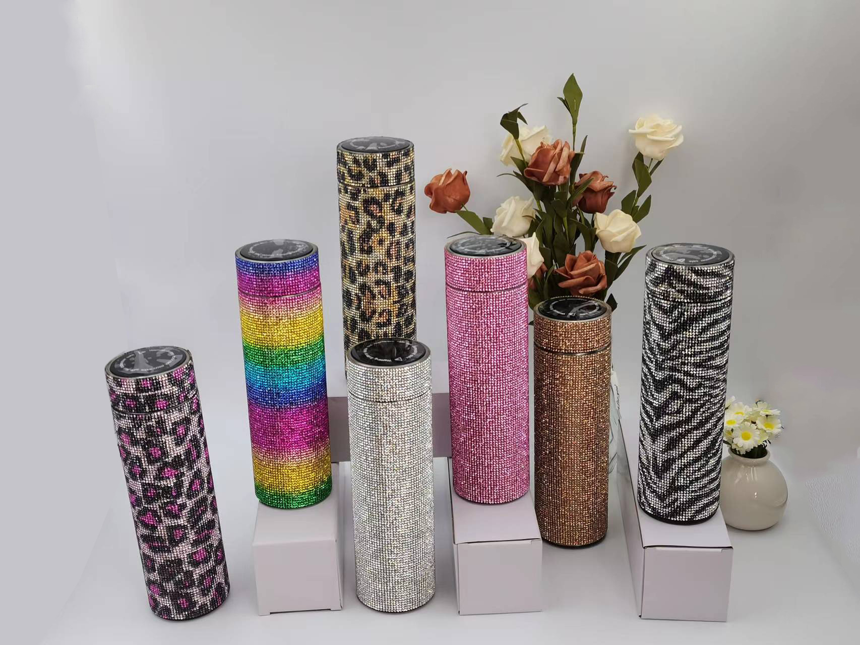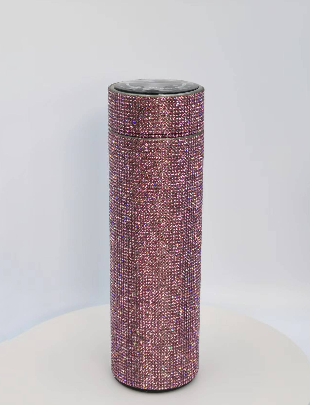 cross-border amazon straight cup diamond cup good-looking stick-on crystals led temperature display cup stainless steel heat and cold insulation