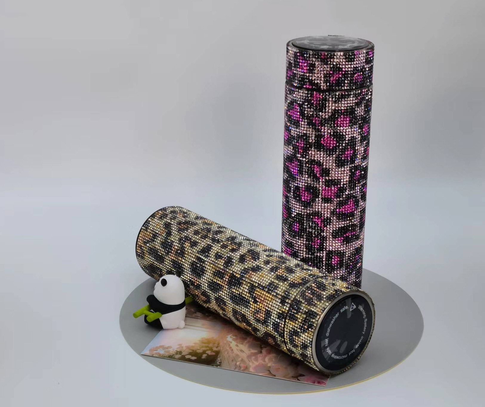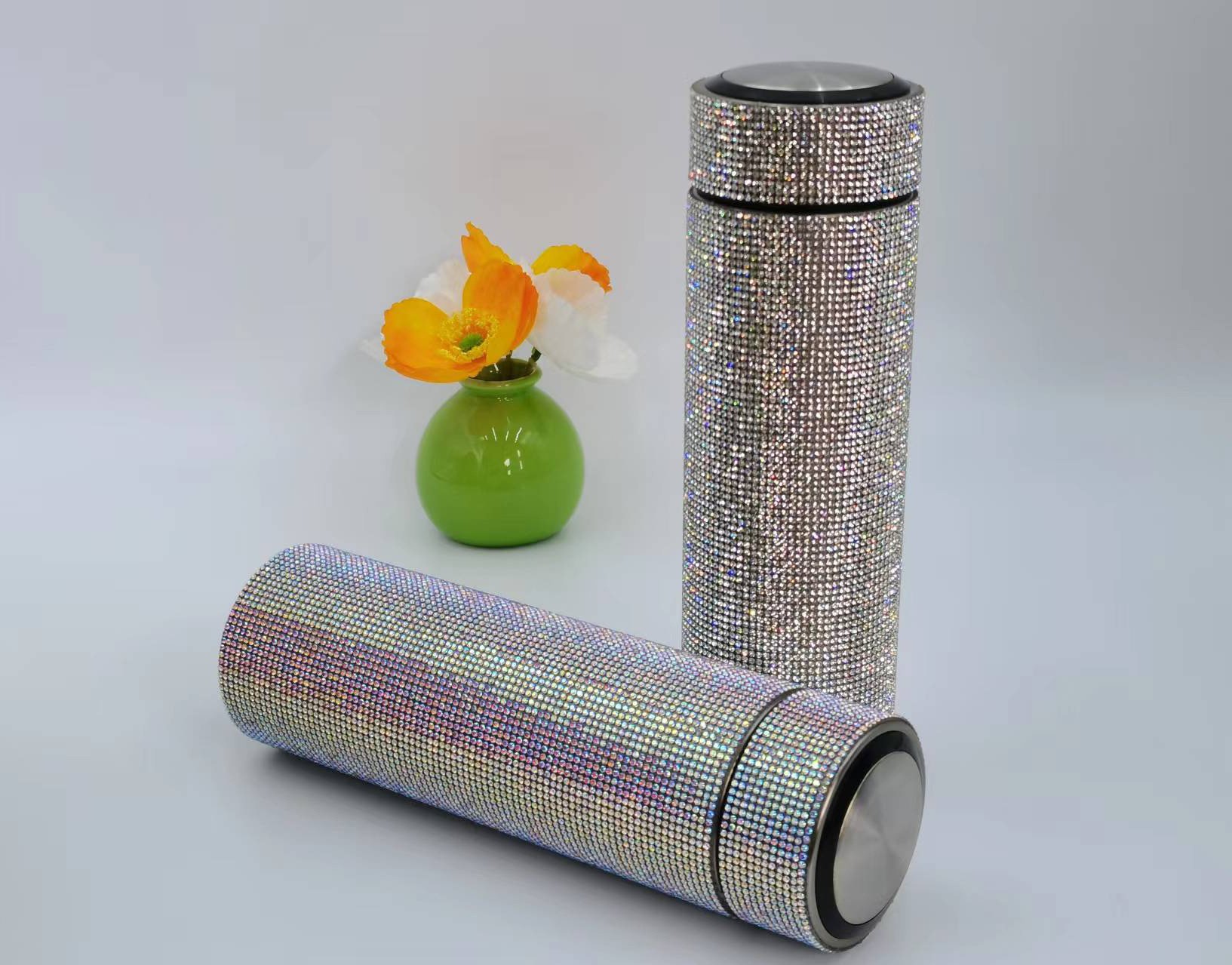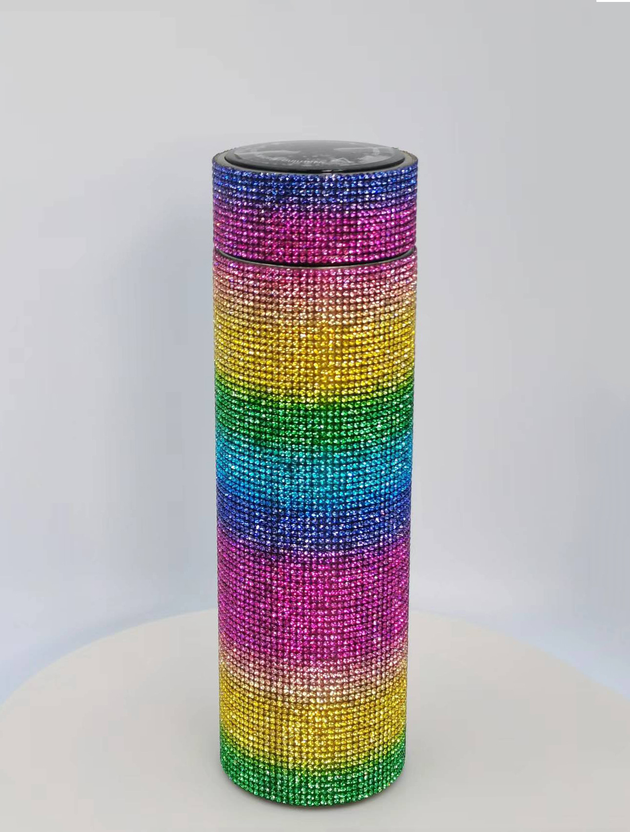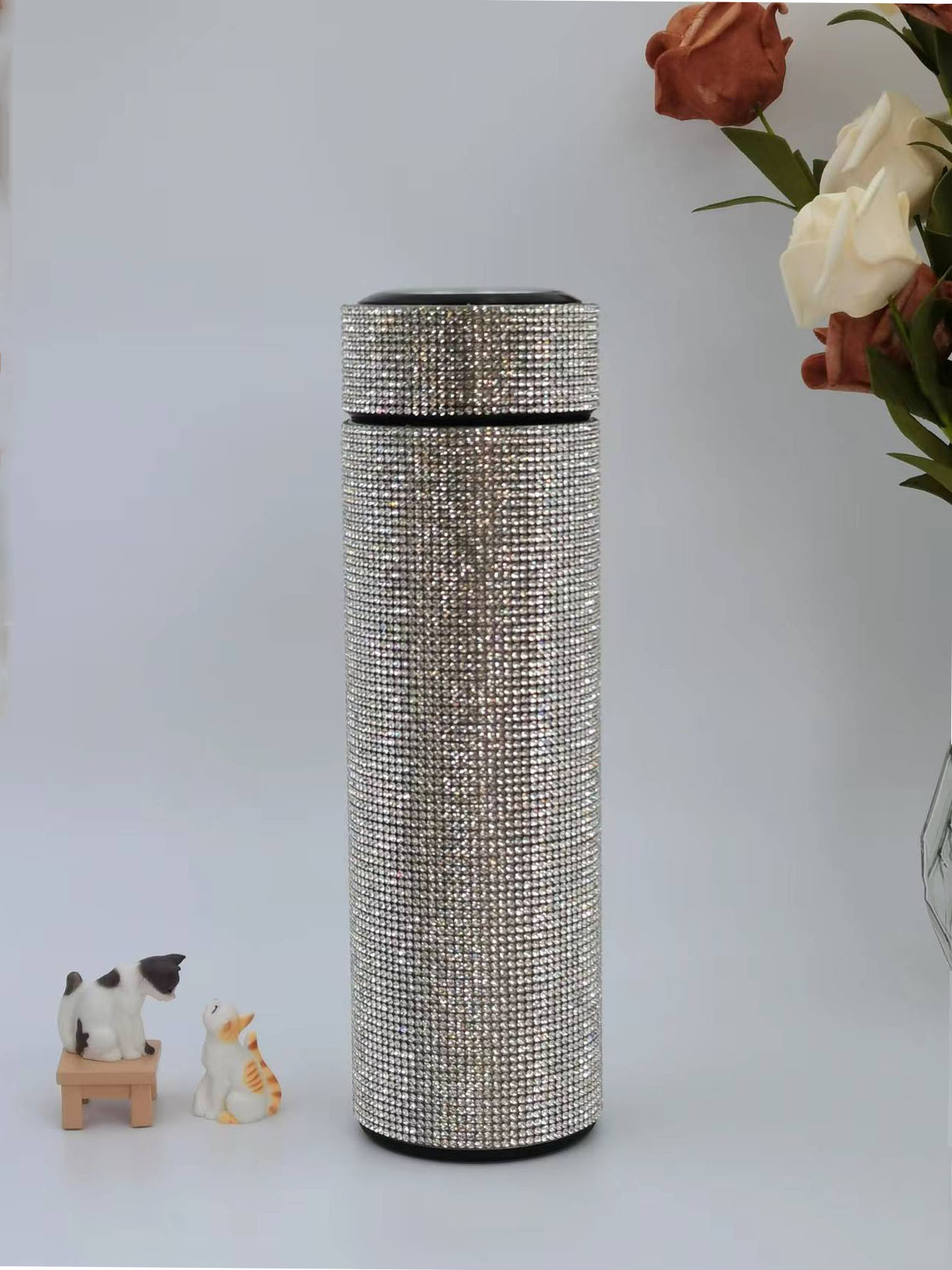 cross-border amazon straight cup diamond cup good-looking stick-on crystals led temperature display cup stainless steel heat and cold insulation