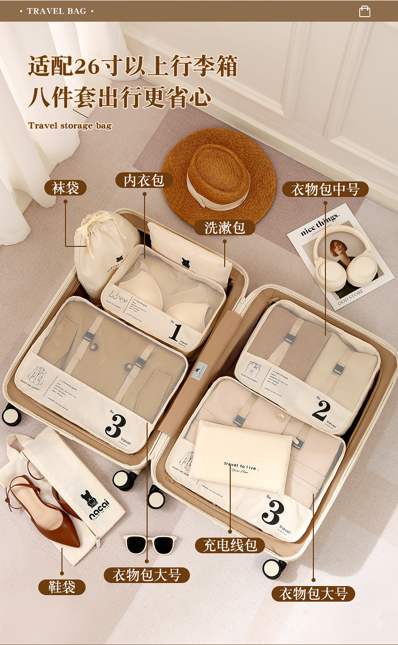 beige seven-piece [full travel storage]]