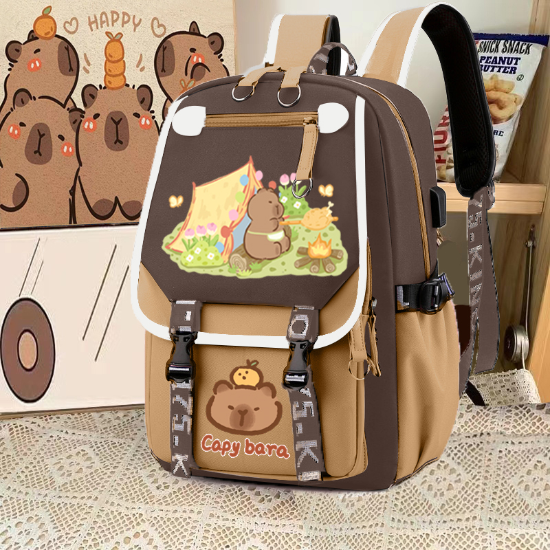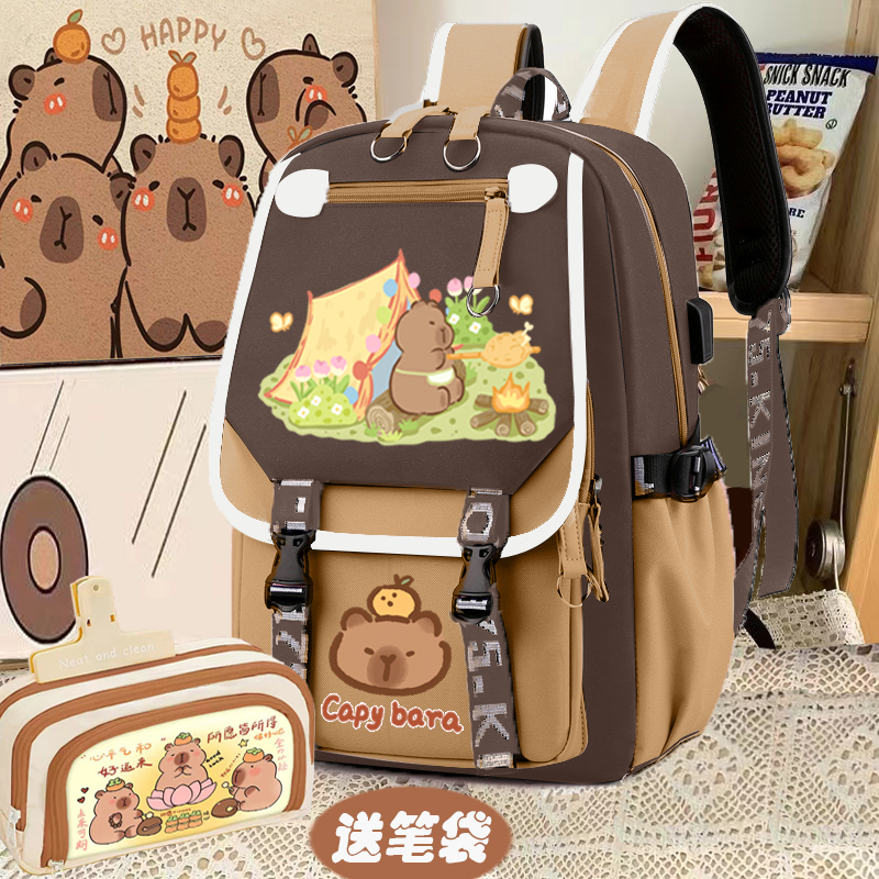 camping capabala brown horizontal zip school bag hll