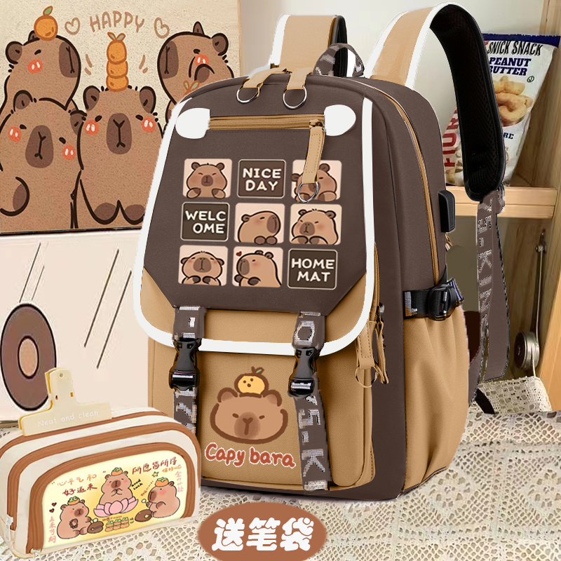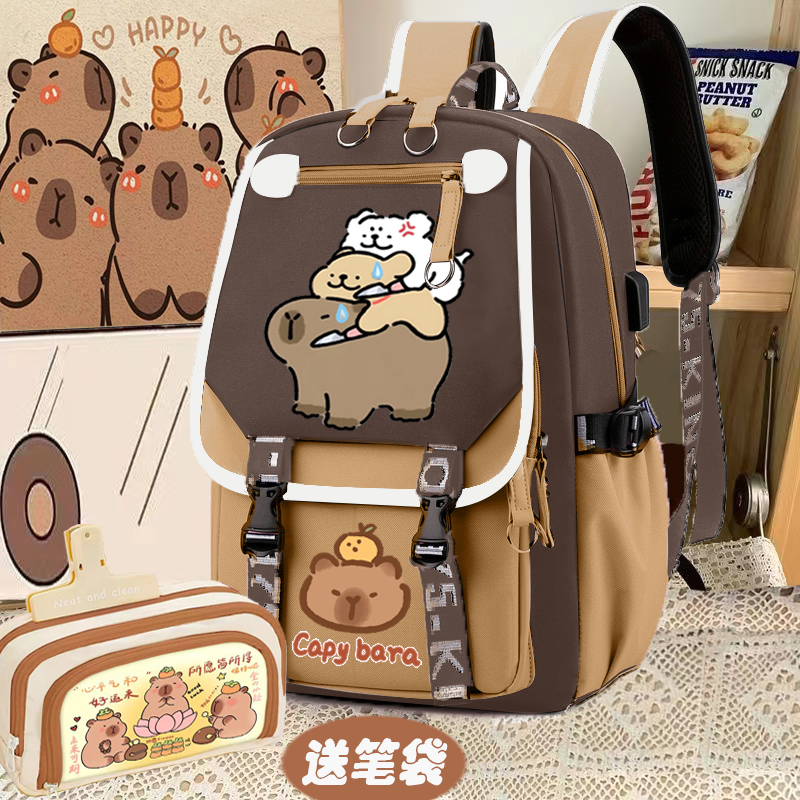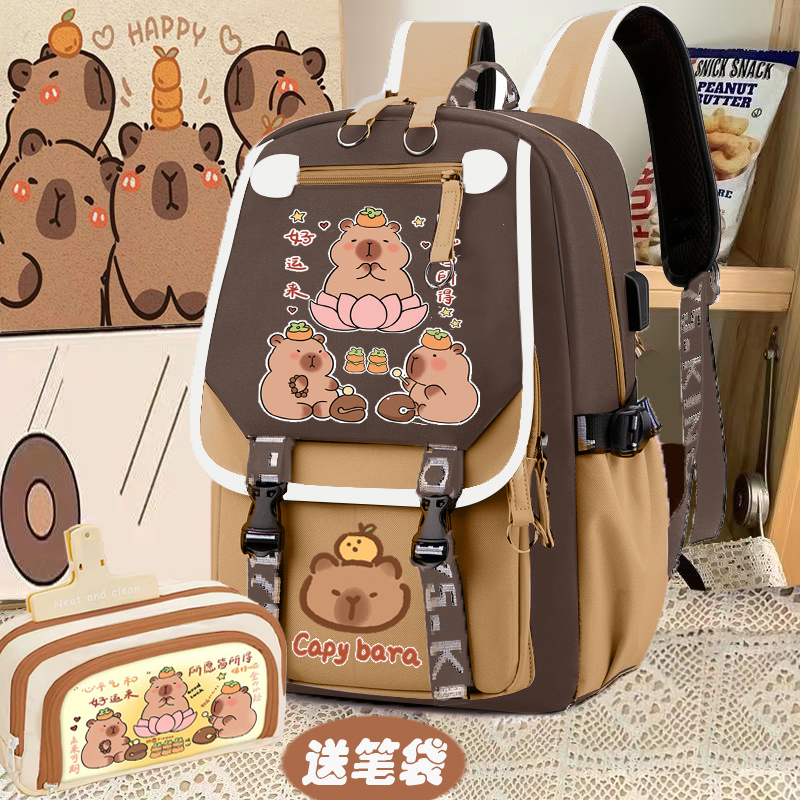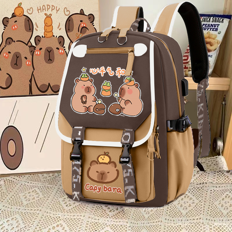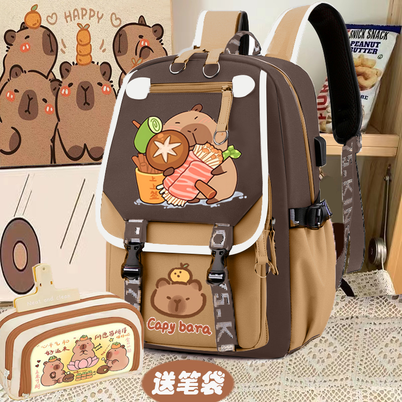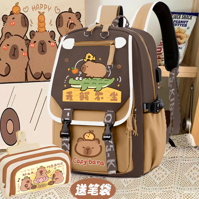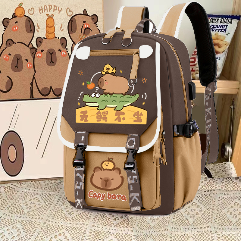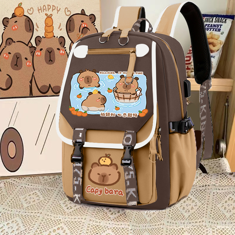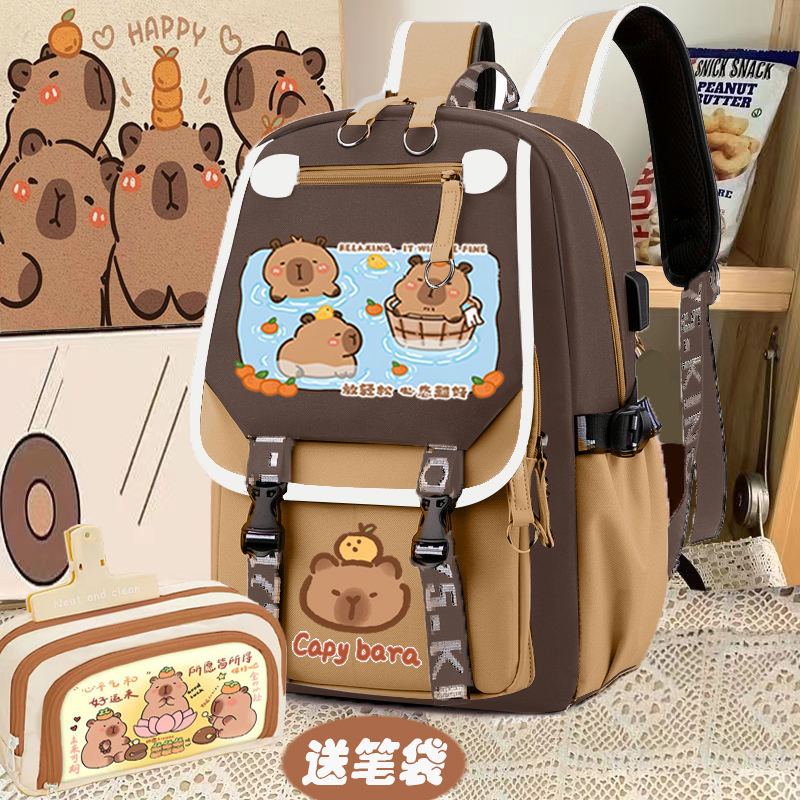 relax bath capabala brown horizontal zip school bag hll
