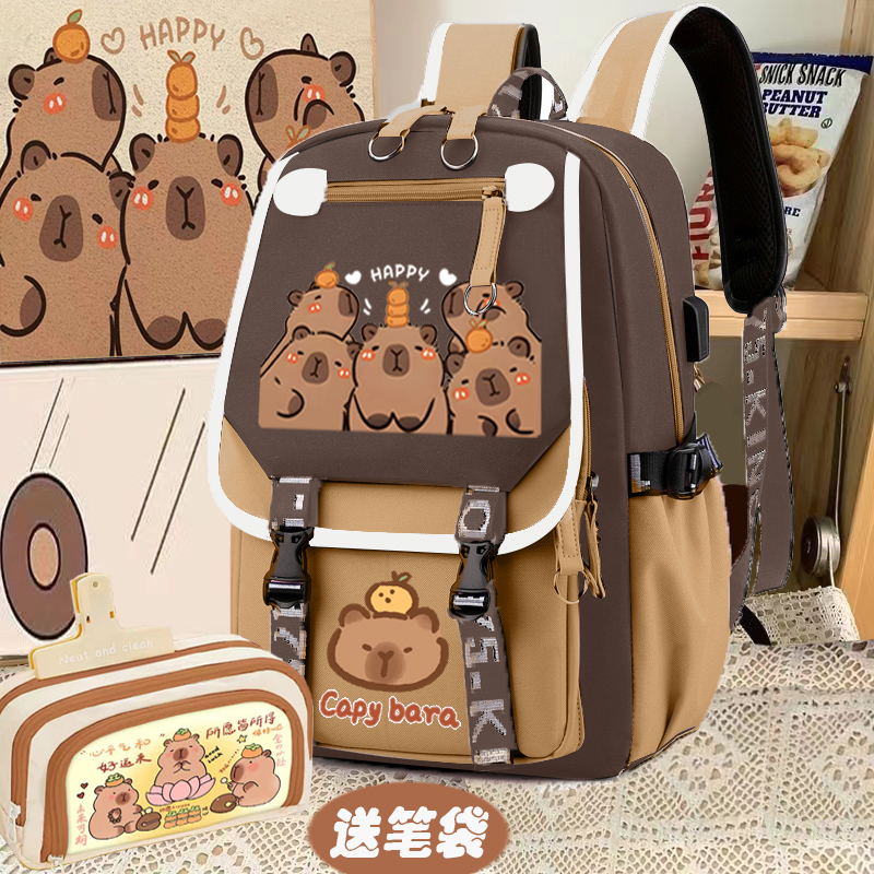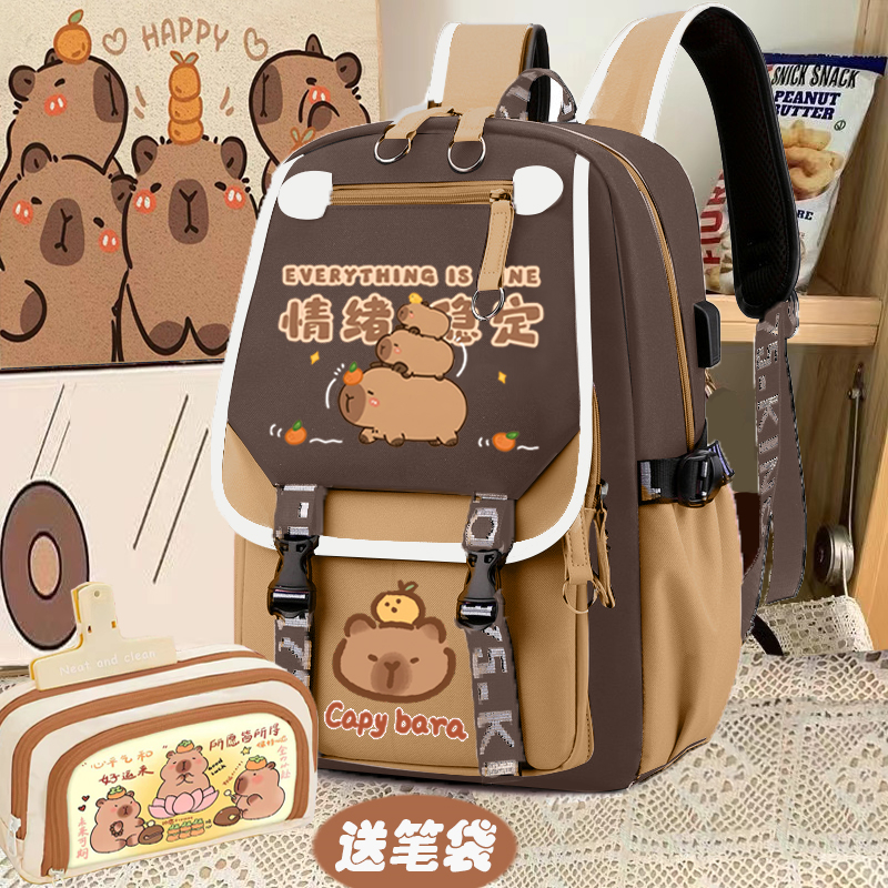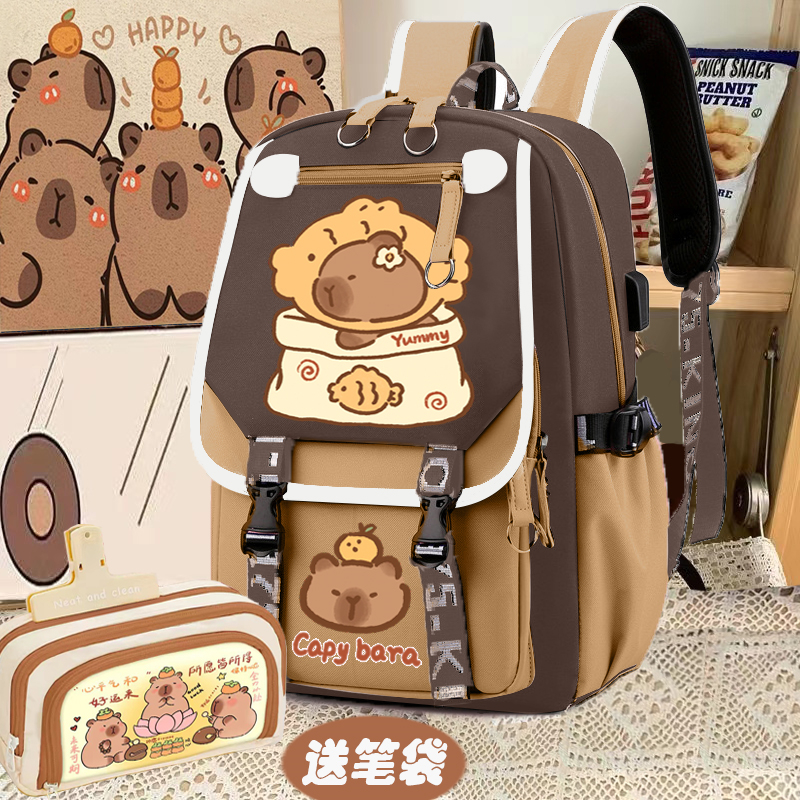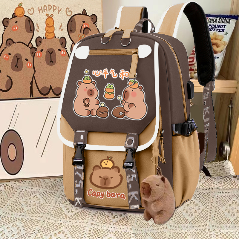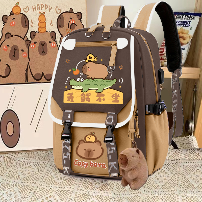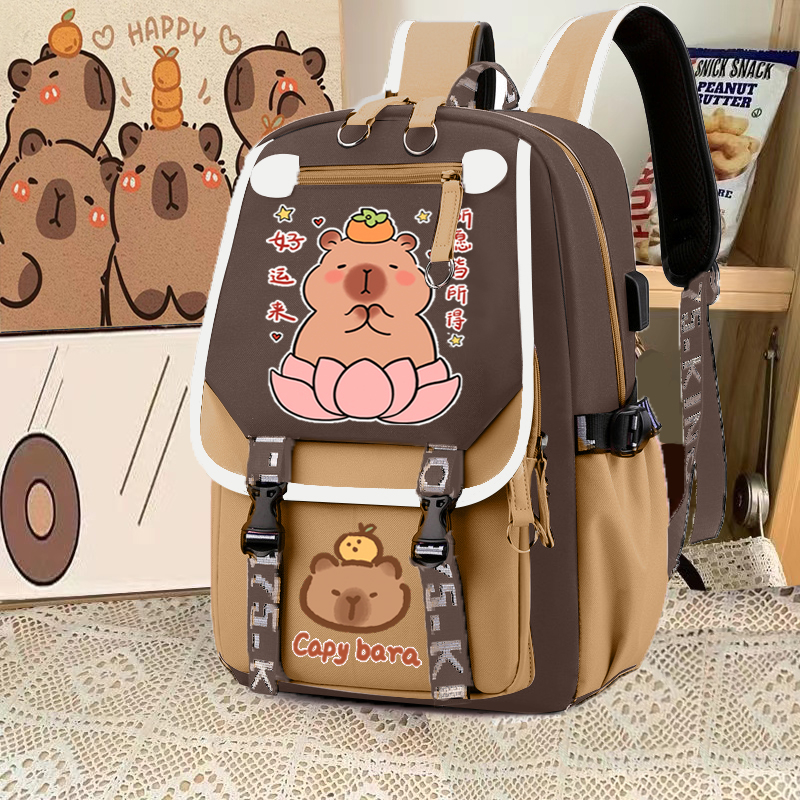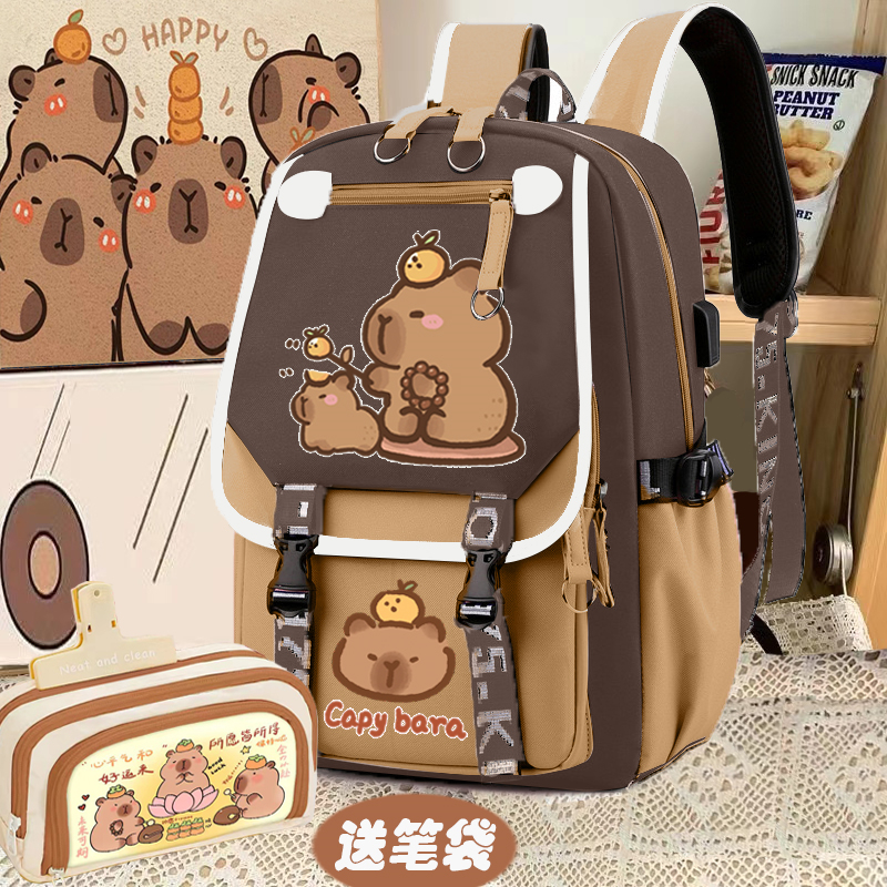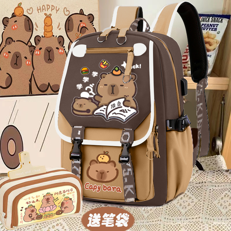 relax bath capabala brown horizontal zip school bag hll