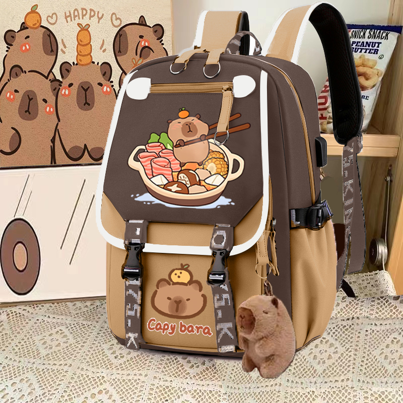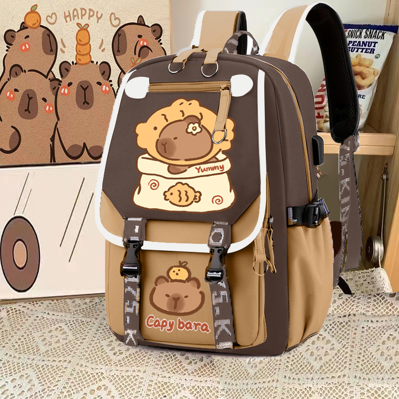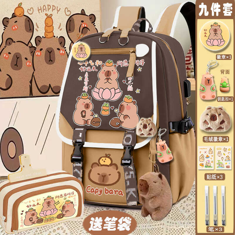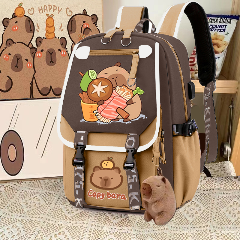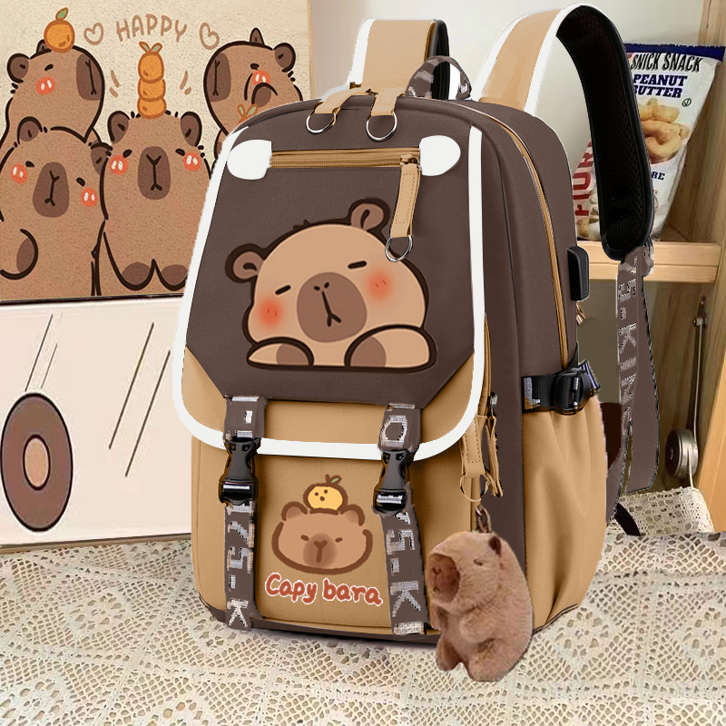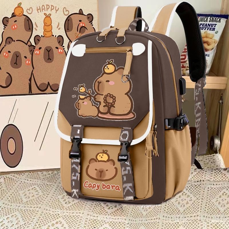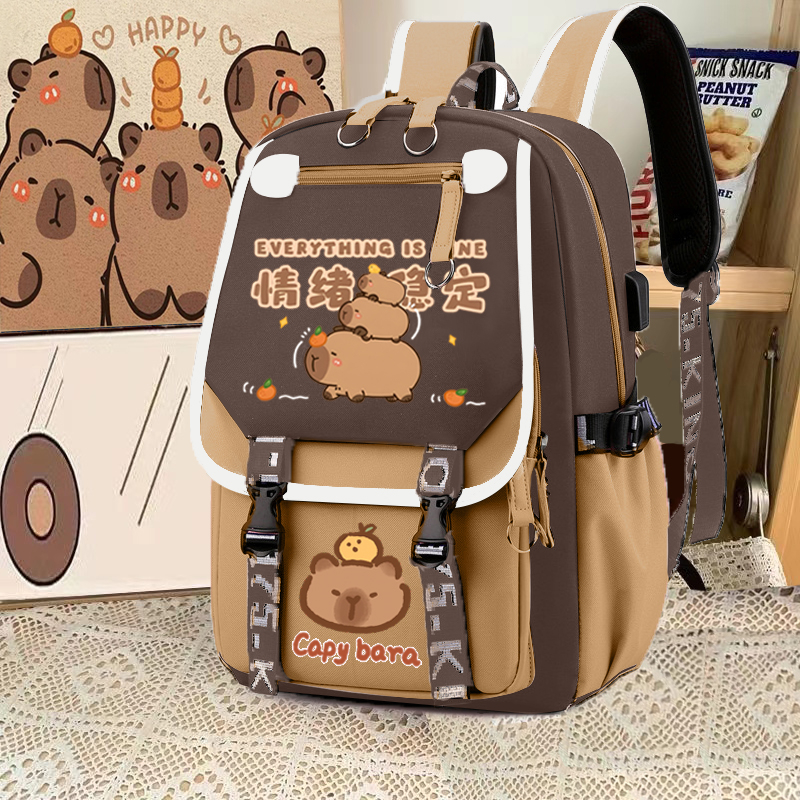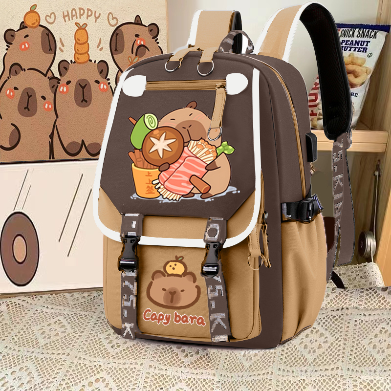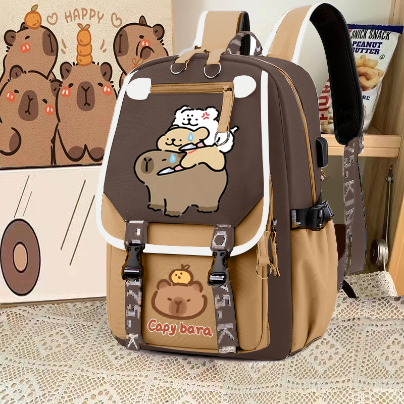 relax bath capabala brown horizontal zip school bag hll