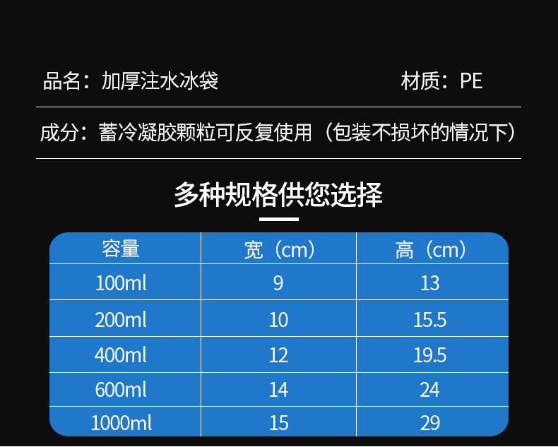 [customized] disposable extra thick retain freshness ice pack water injection ice bug ice pack food freshness protection