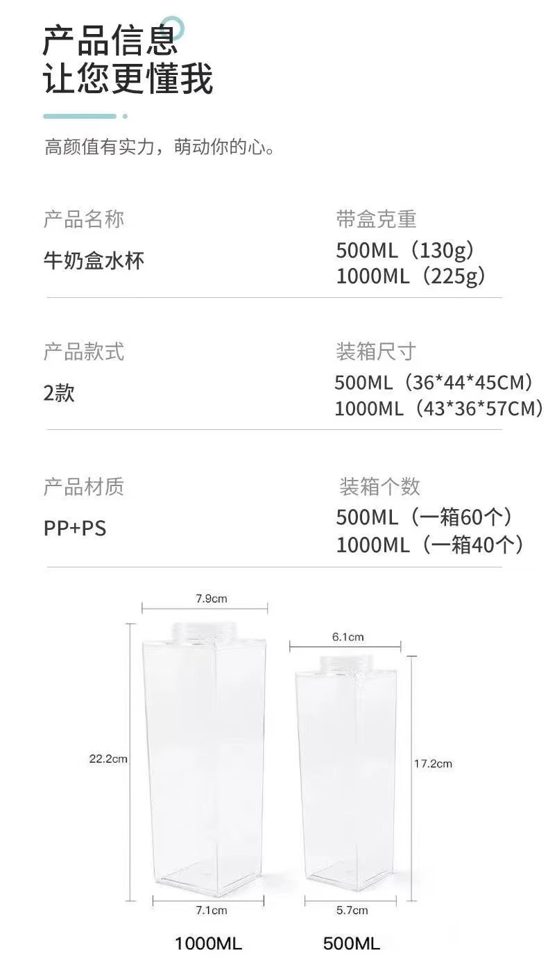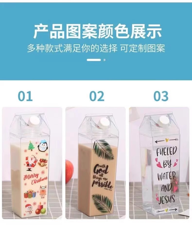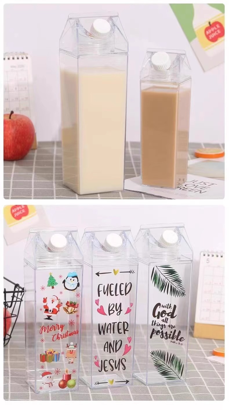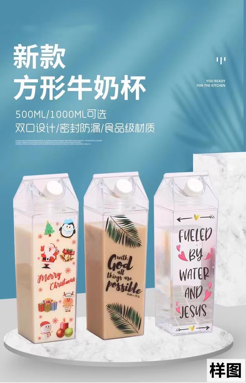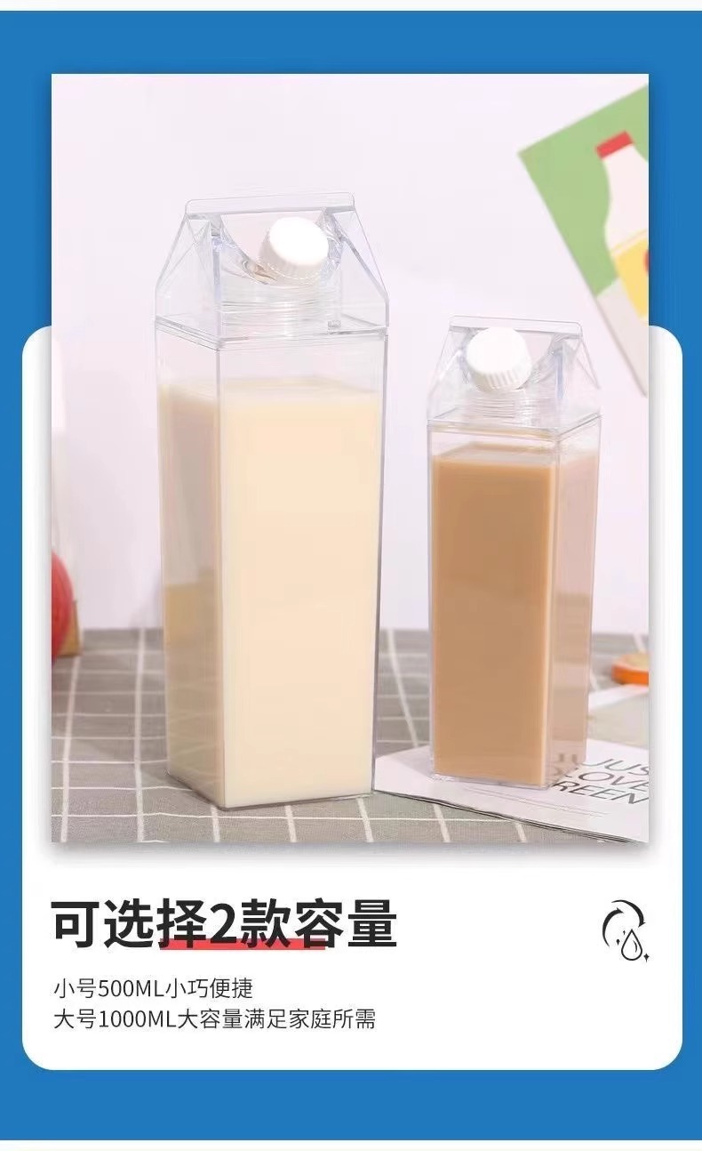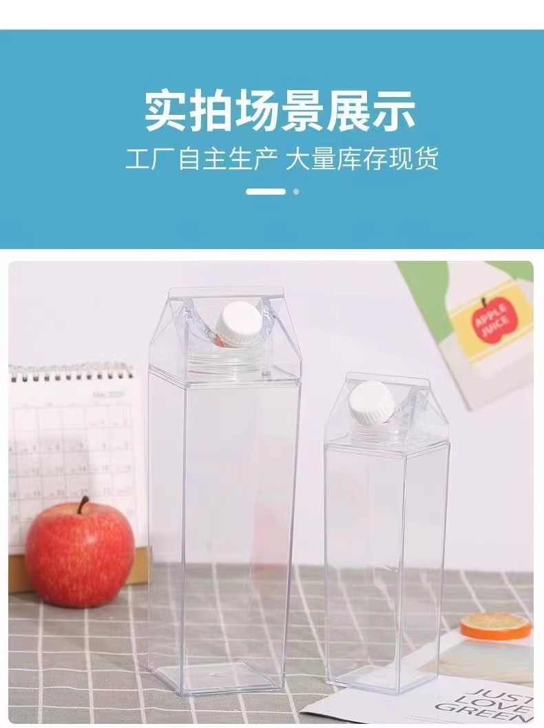 milk carton square cup transparent large capacity summer water cup men's and women's good-looking plastic student portable tumbler