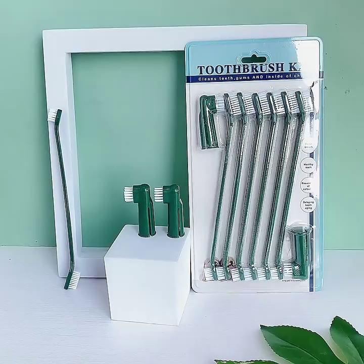 Pet toothbrush set Bilateral dog toothbrush oral hygiene finger toothbrush Cat Brush Pet Supplies Wholesaler