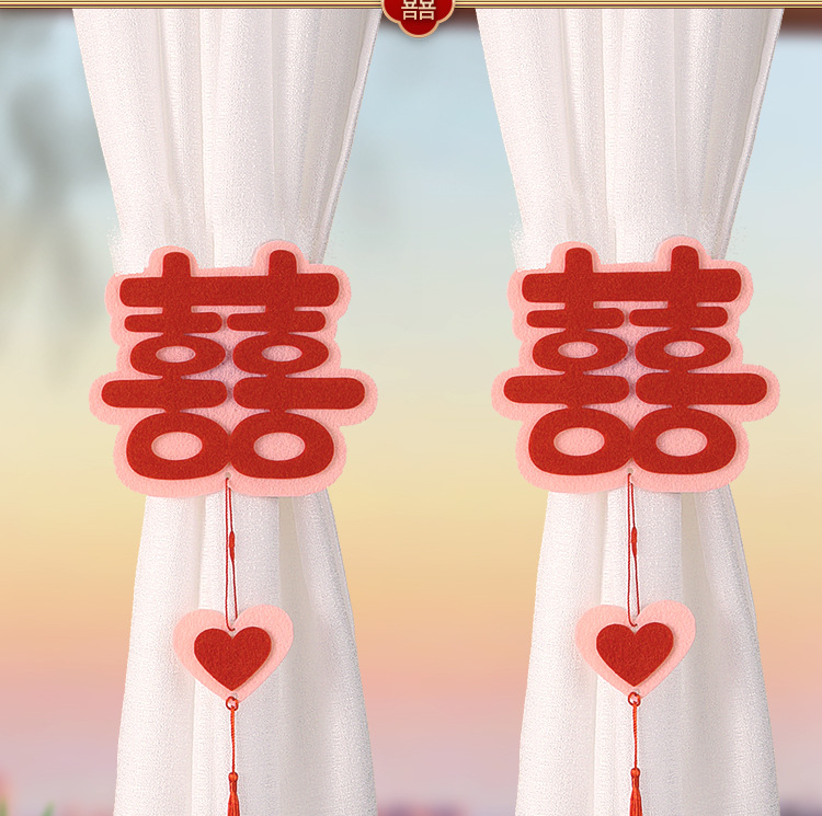 wine red + pink love curtain bow bandage pairs