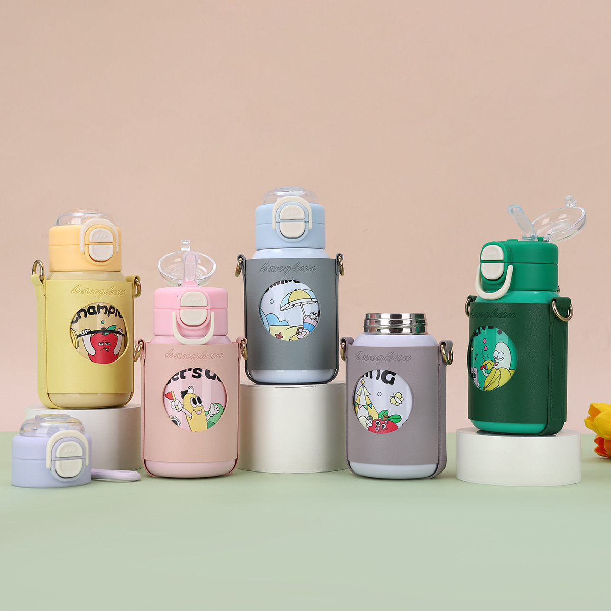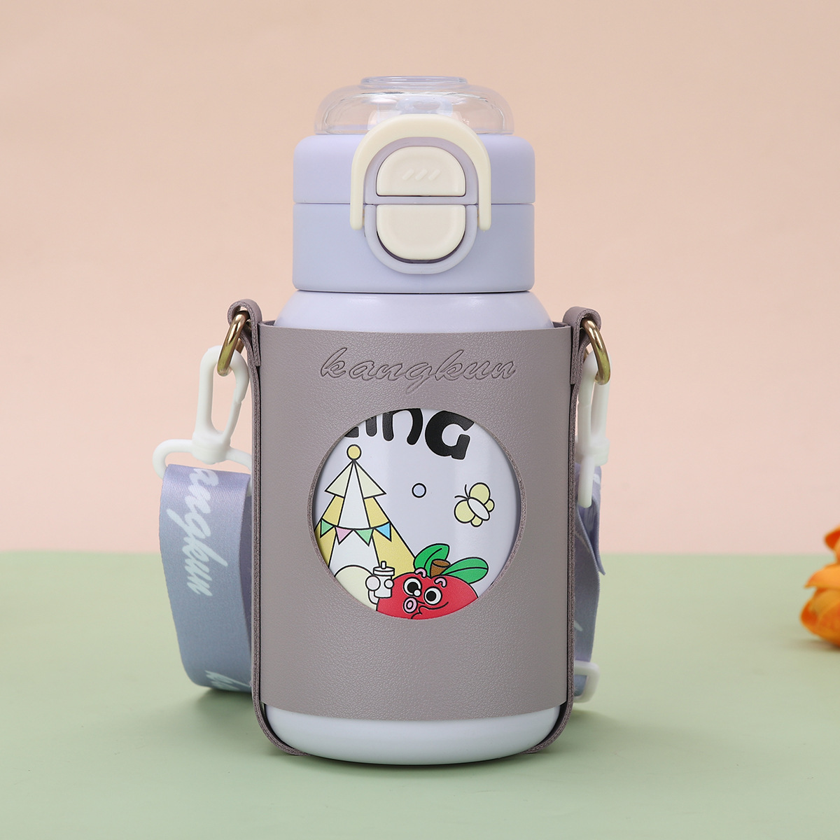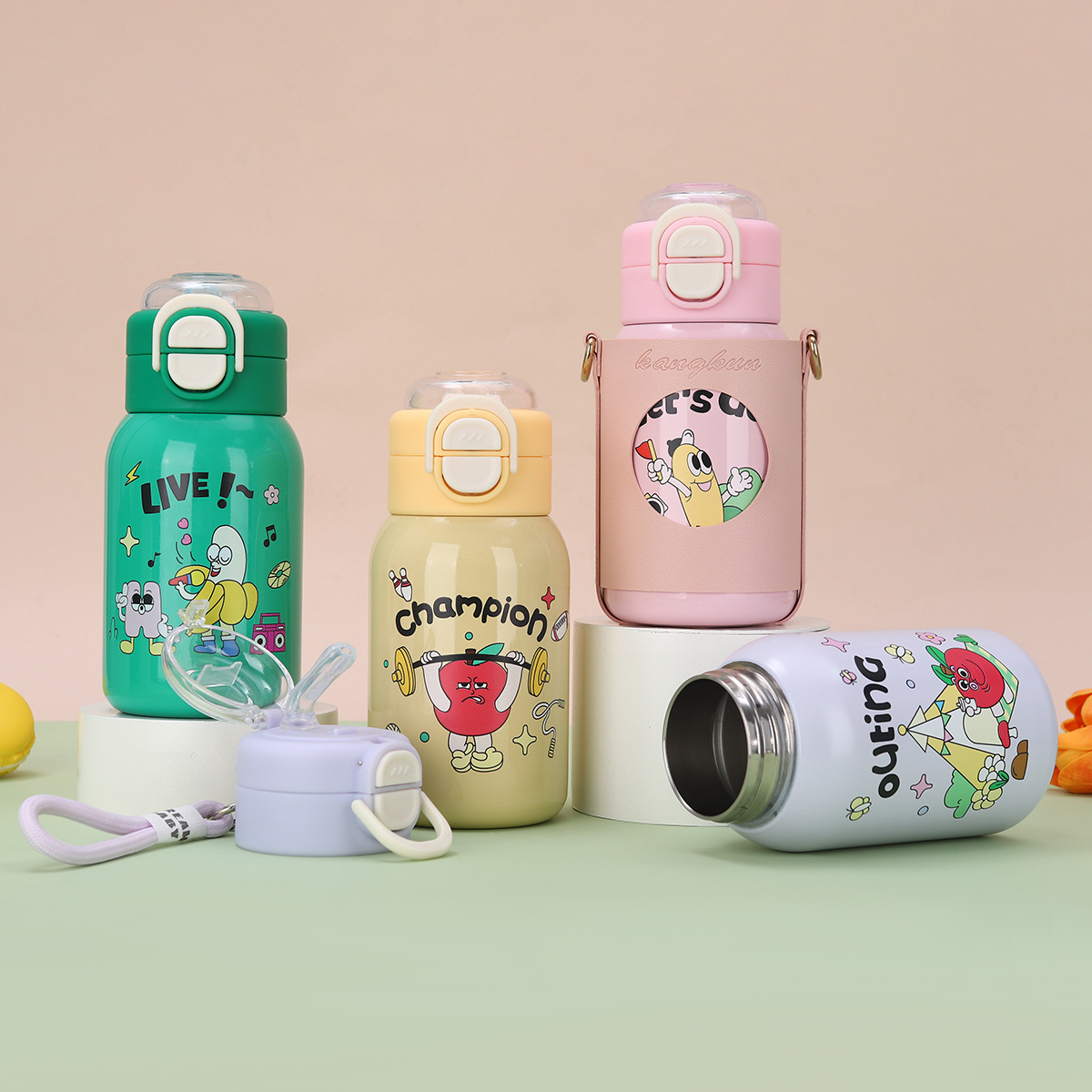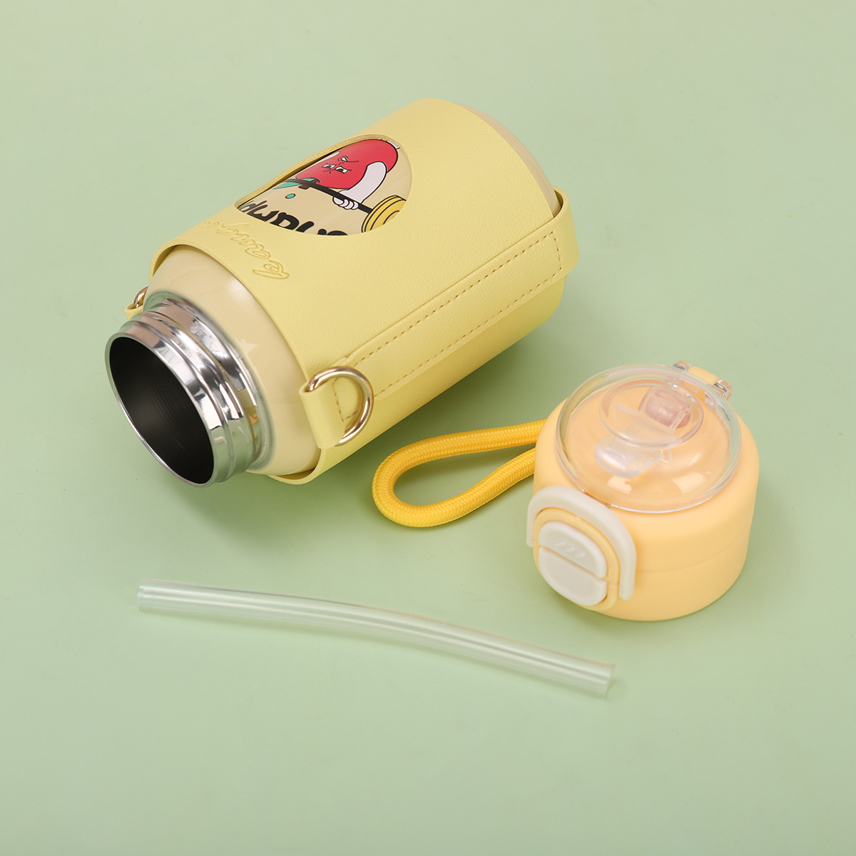 cartoon funny children's thermos mug 316 stainless steel double drinking straw bullet cup portable back cover portable bottle for children