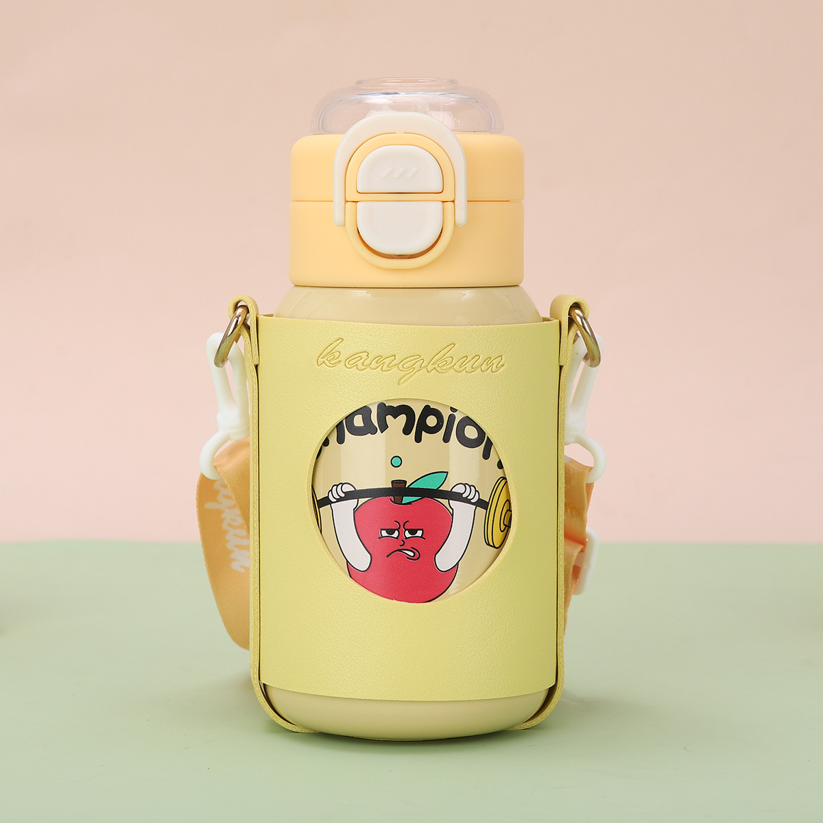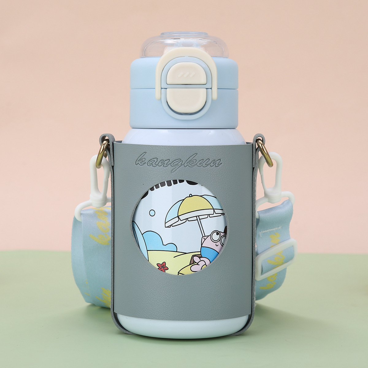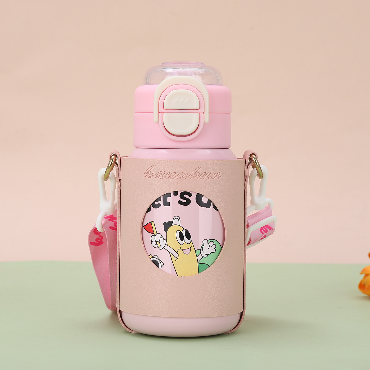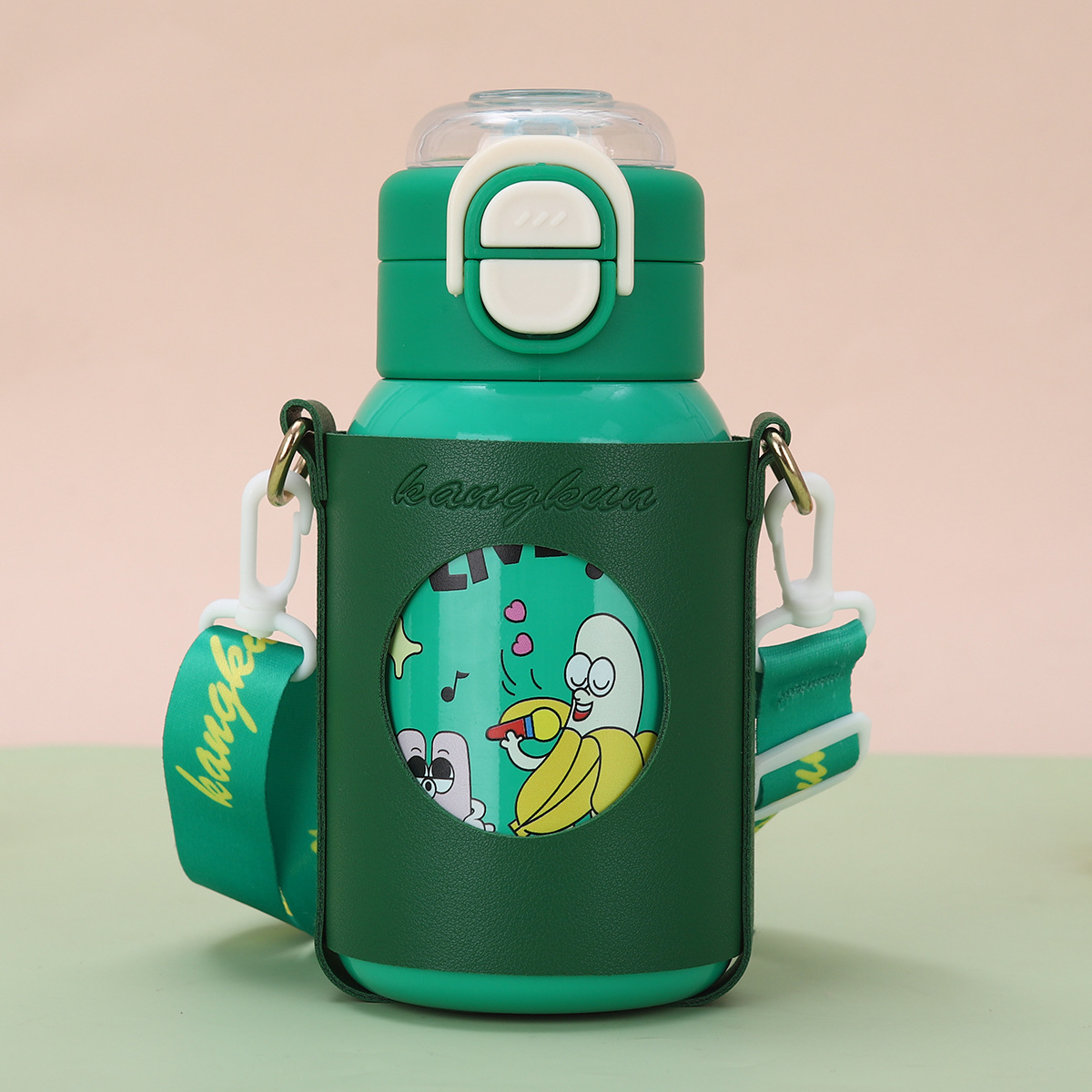 cartoon funny children's thermos mug 316 stainless steel double drinking straw bullet cup portable back cover portable bottle for children