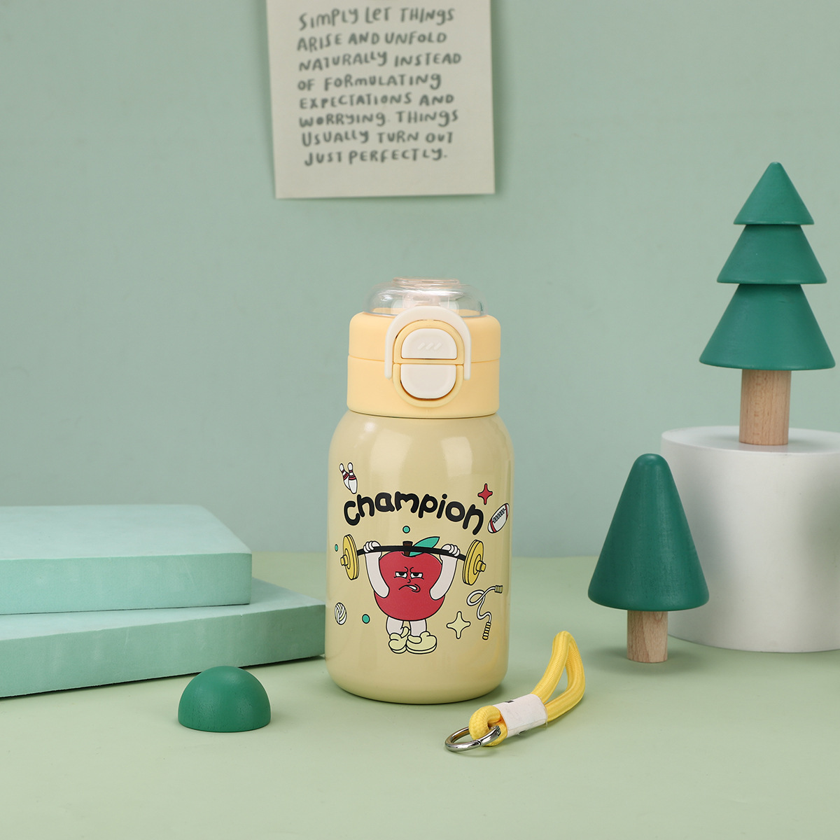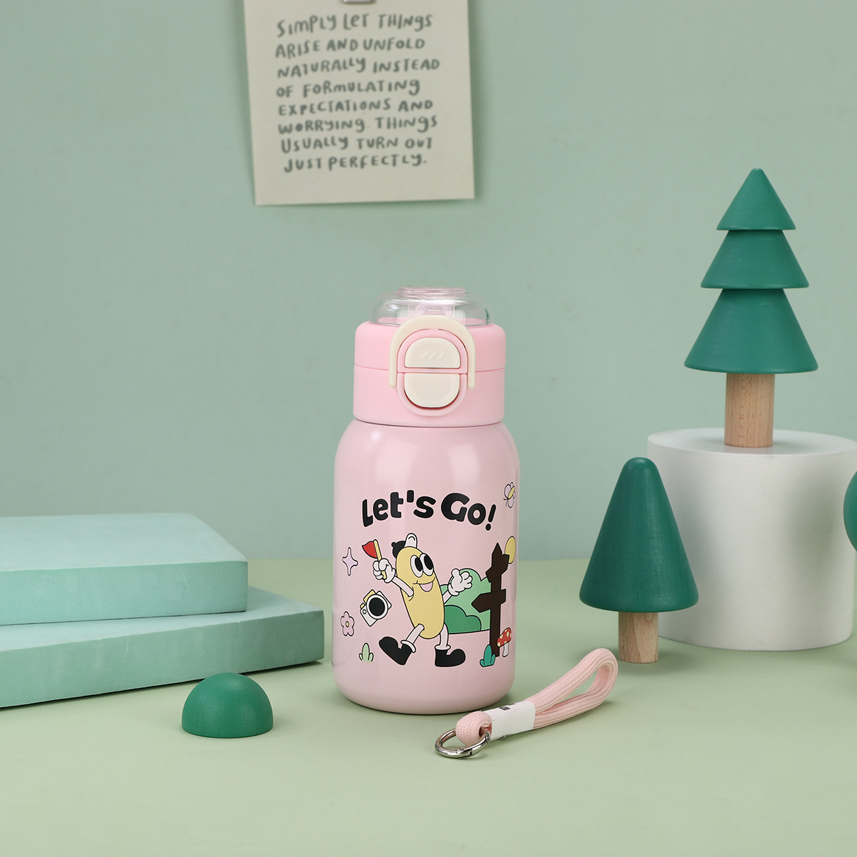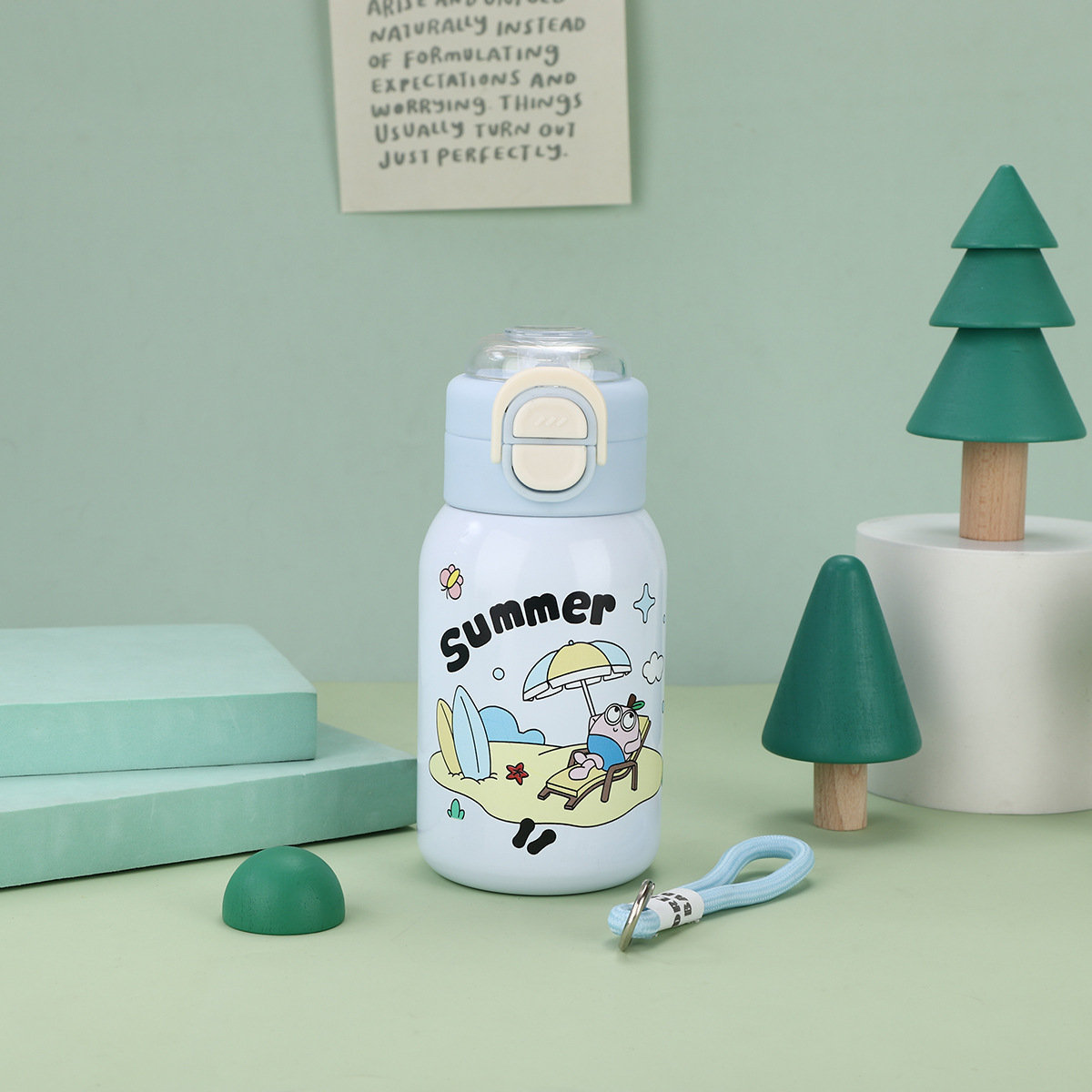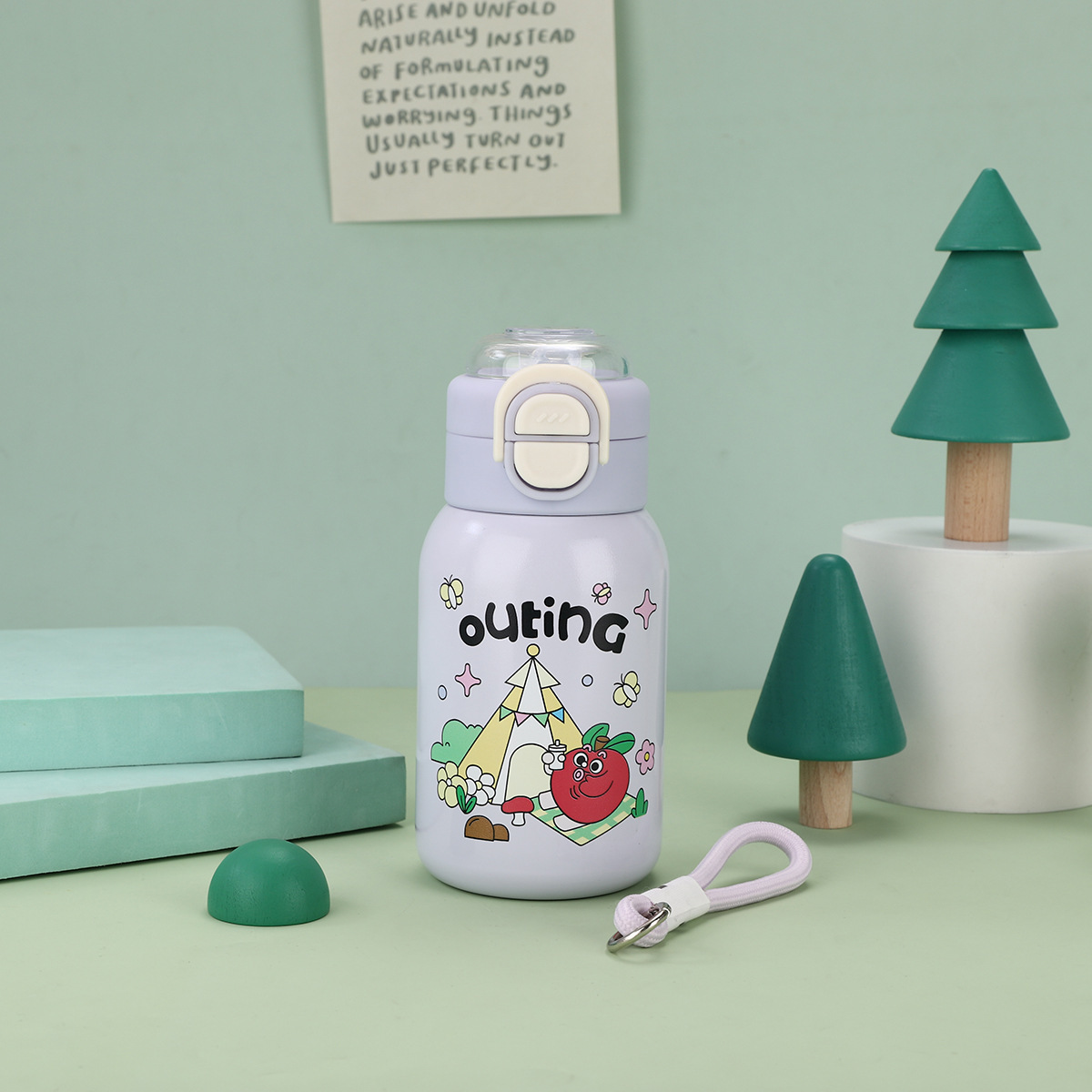 cartoon funny children's thermos mug 316 stainless steel double drinking straw bullet cup portable back cover portable bottle for children