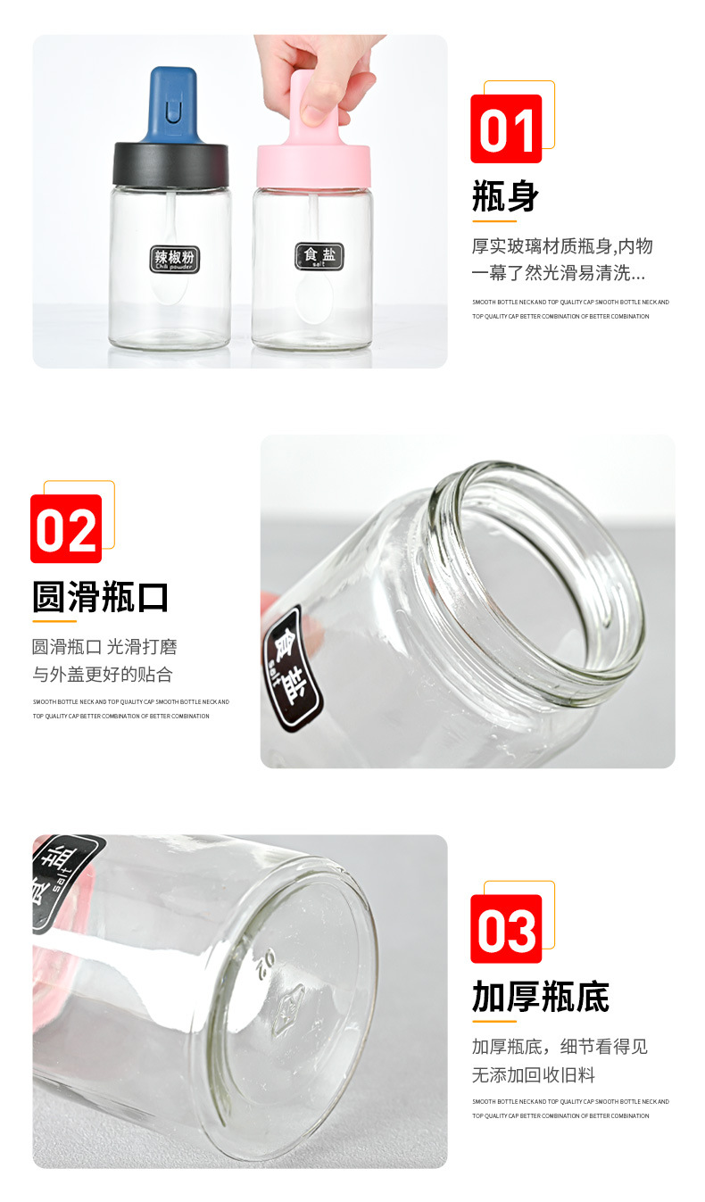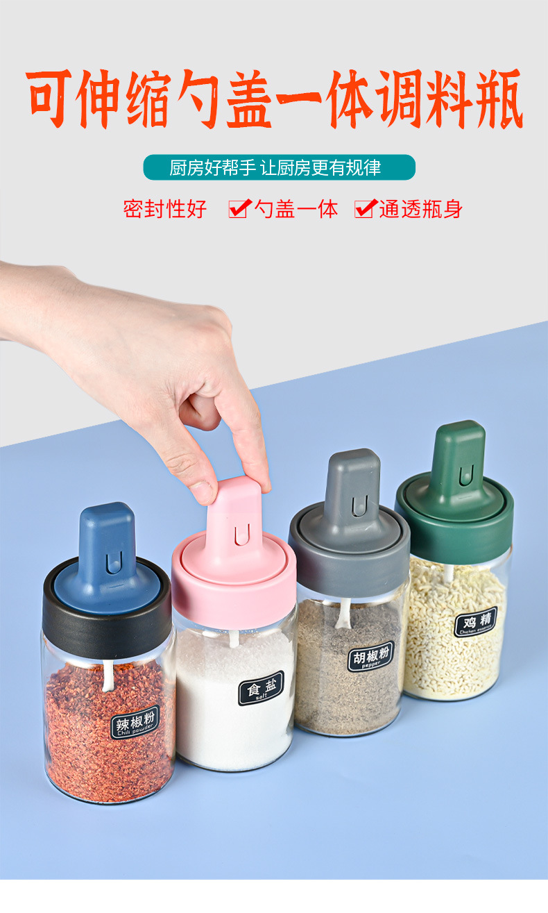 seasoning containers combination set household kitchen retractable glass spice jars salt jar sealed moisture-proof seasoning box