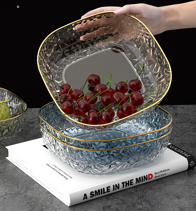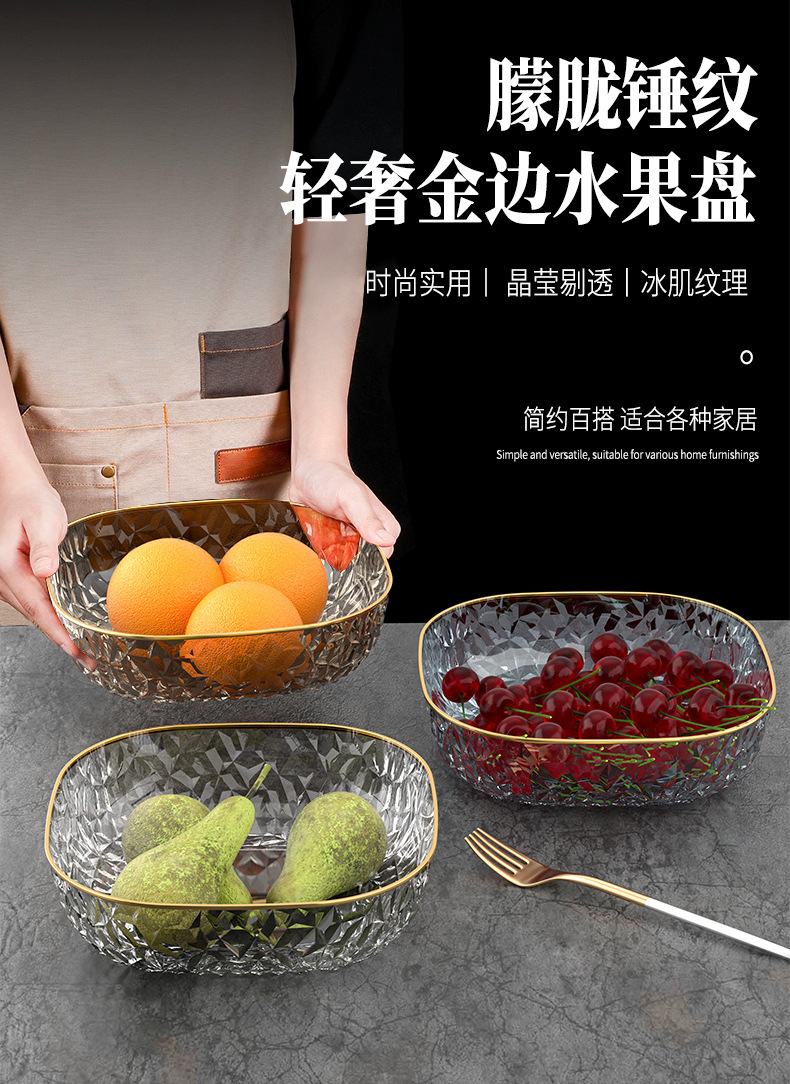 [transparent 3 pack] golden edge fruit plate