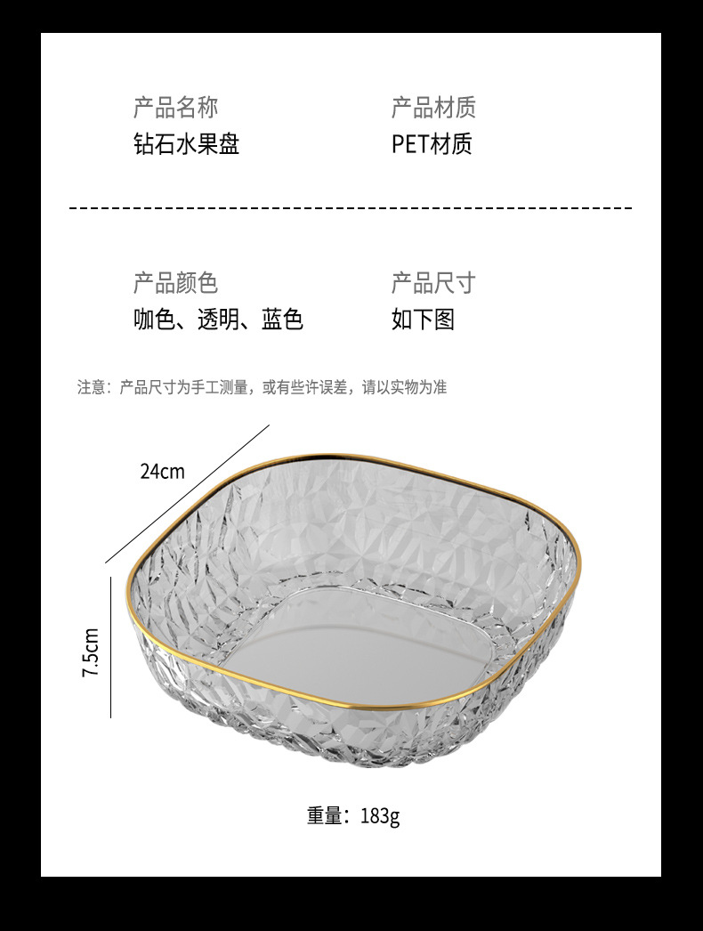 [transparent 1 pack] golden edge fruit plate