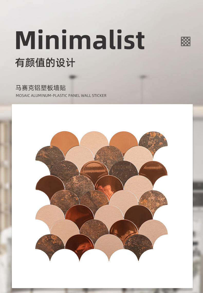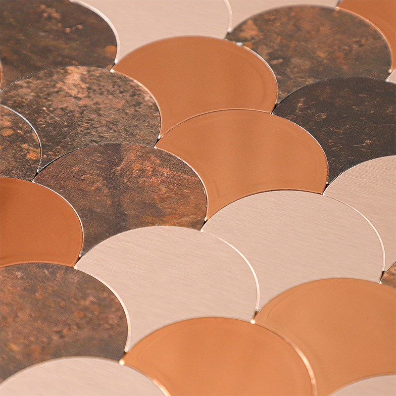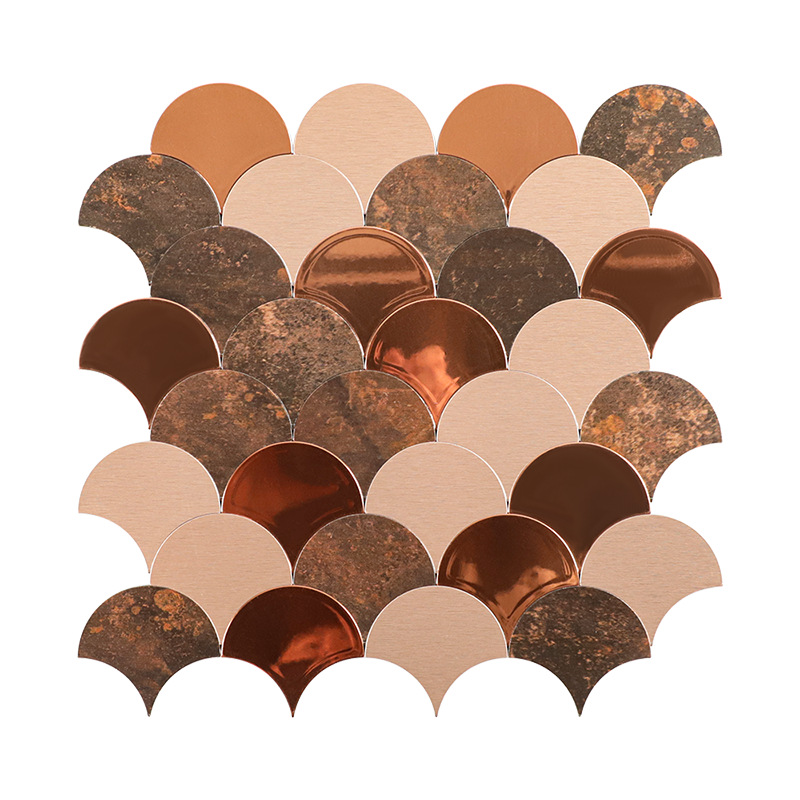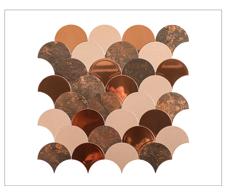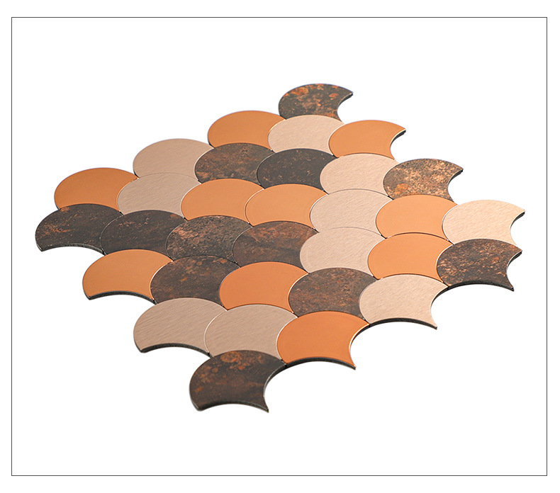 metal mirror fan-shaped mosaic tile self-adhesive aluminum-plastic plate scale antique background wall sticker decoration kitchen bar counter