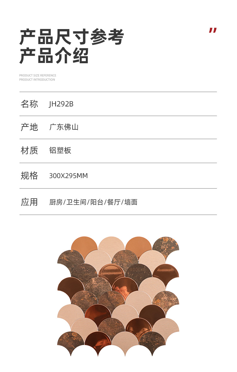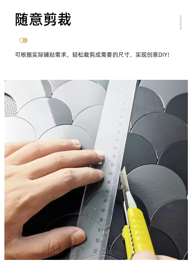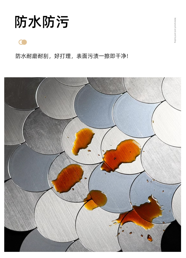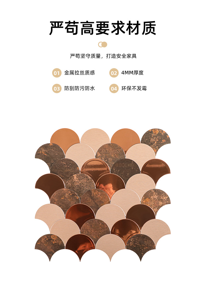 metal mirror fan-shaped mosaic tile self-adhesive aluminum-plastic plate scale antique background wall sticker decoration kitchen bar counter