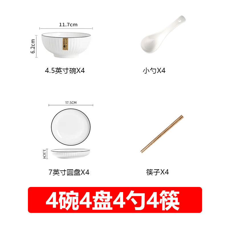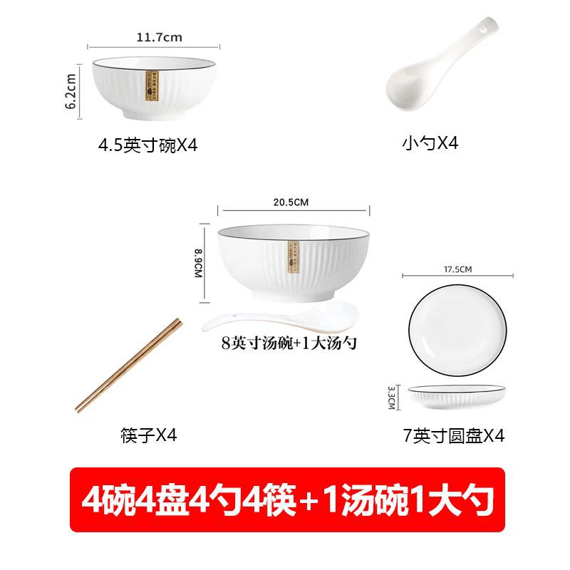 4 bowls, 4 plates, 4 spoons, 4 chopsticks +1 big soup bowl 1 large