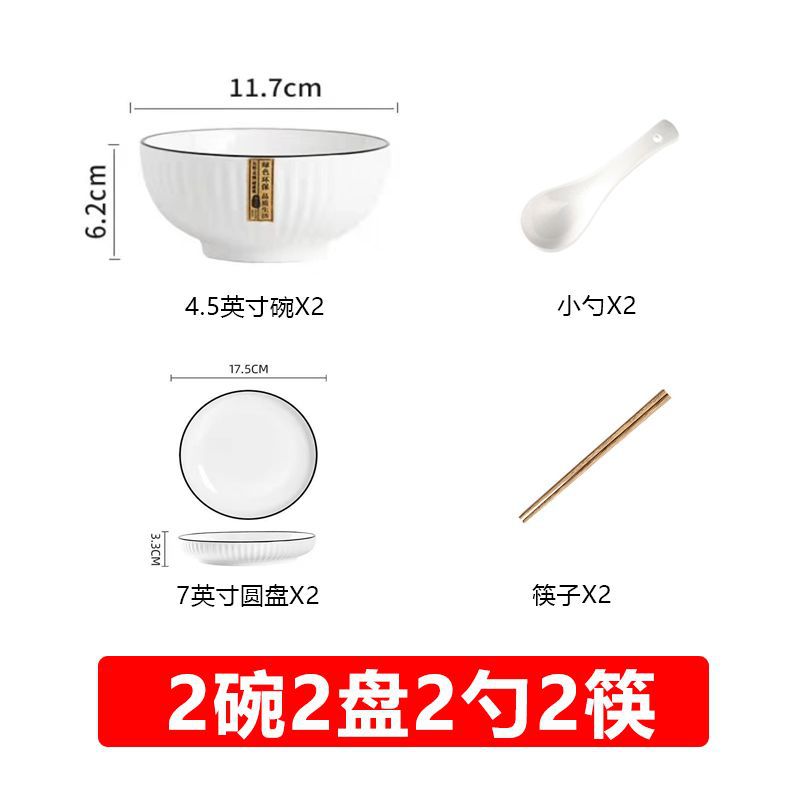 2 bowls, 2 plates, 2 spoons and 2 chopsticks
