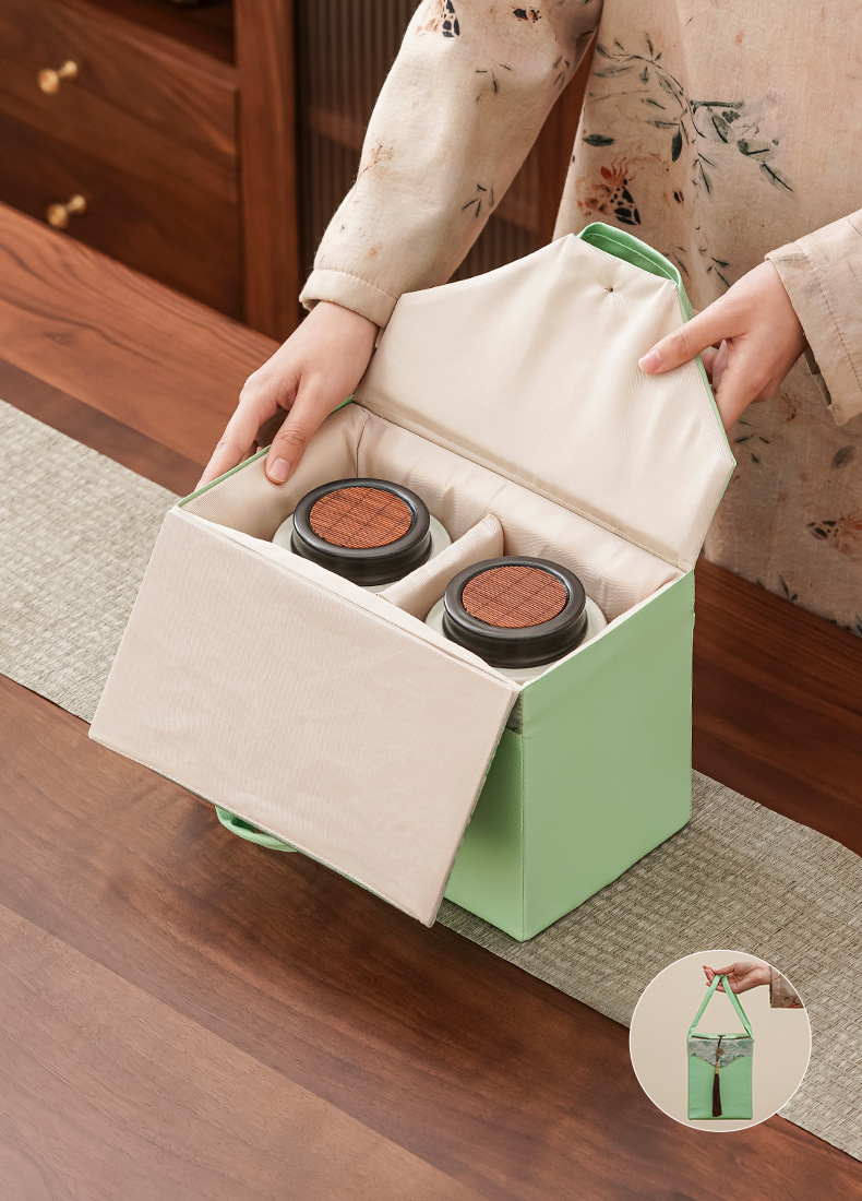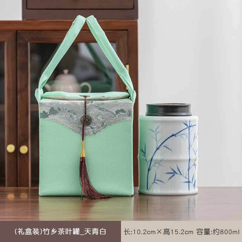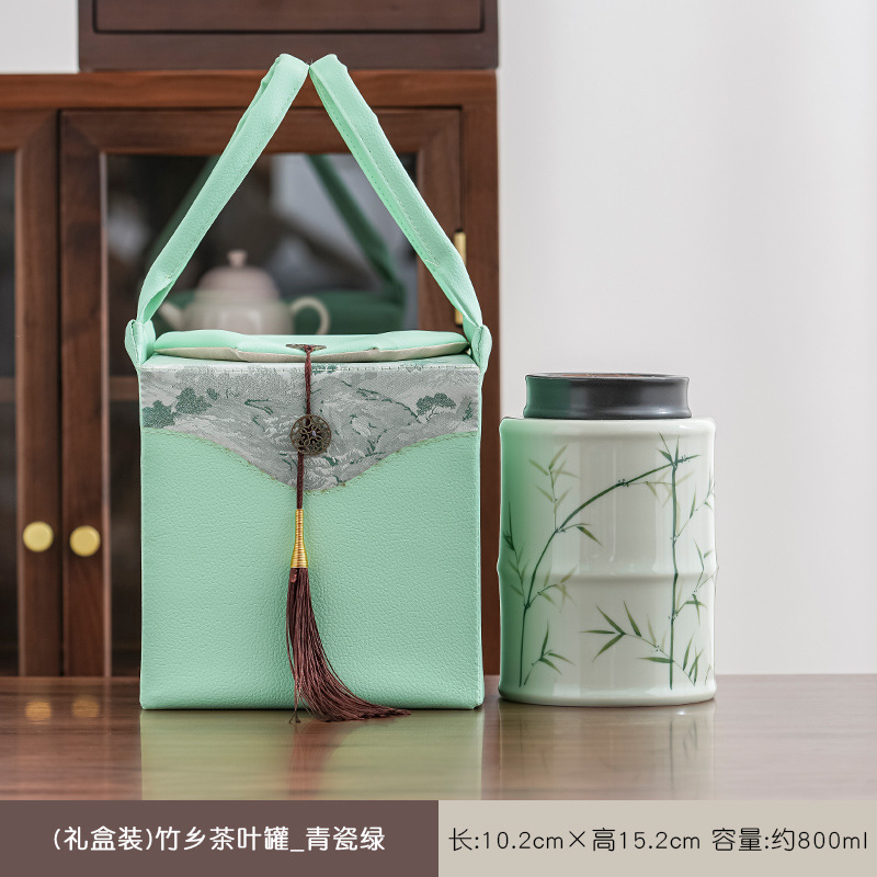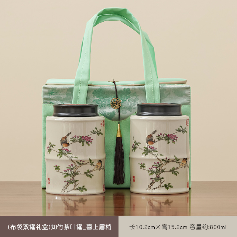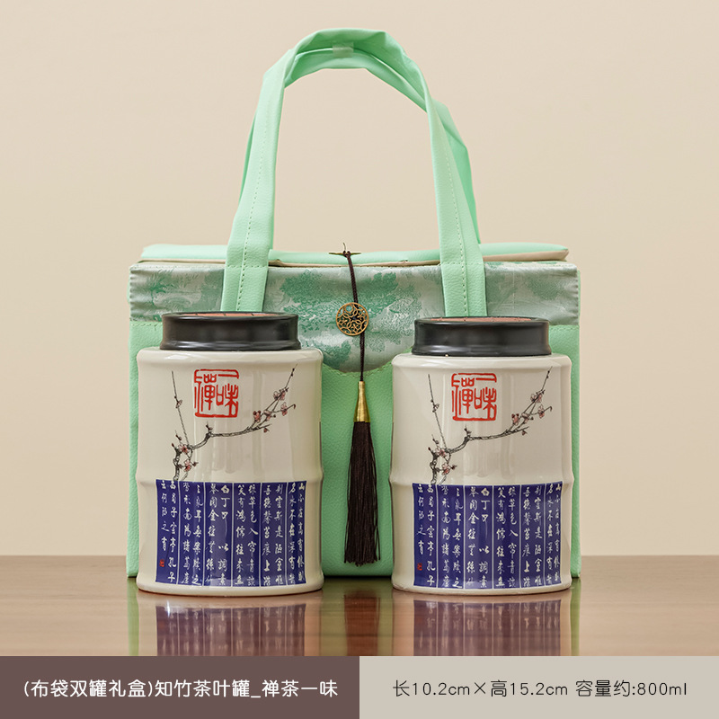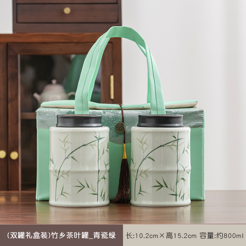 (double cans gift box) hometown of bomboo tea cans-celadon green