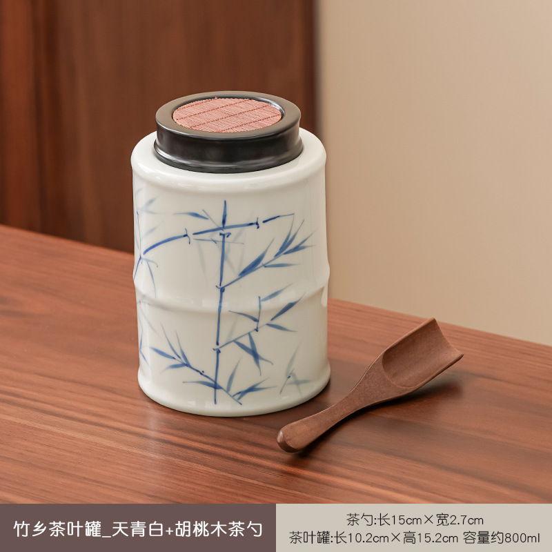 hometown of bomboo tea pot (azure and white) + walnut tea spoon