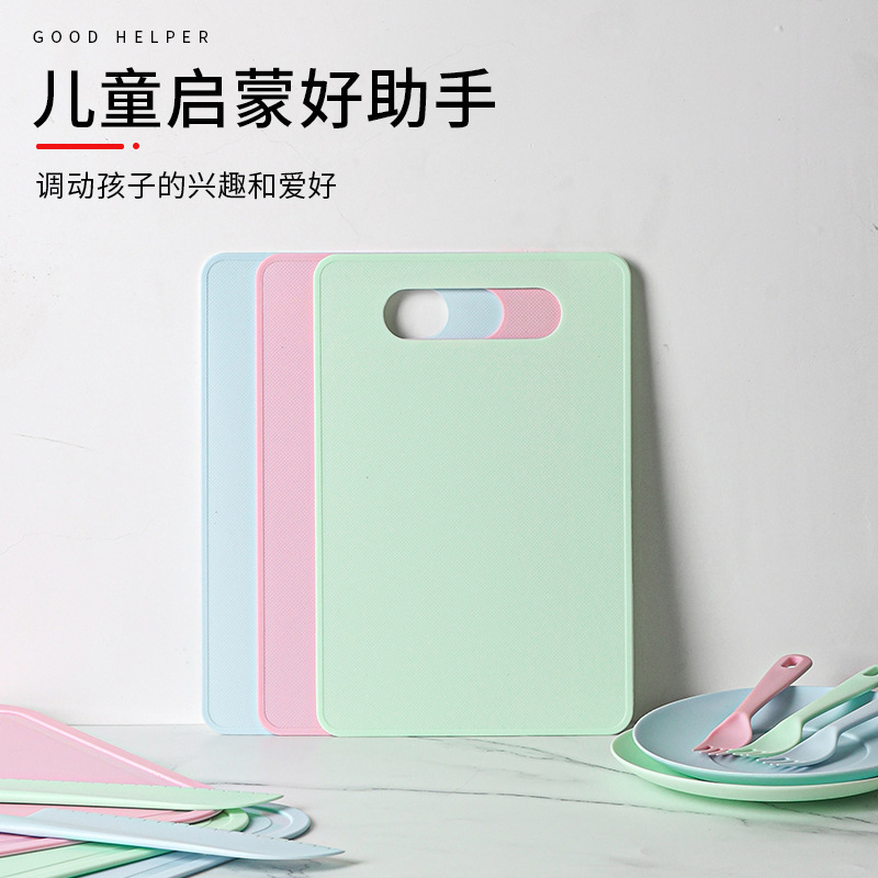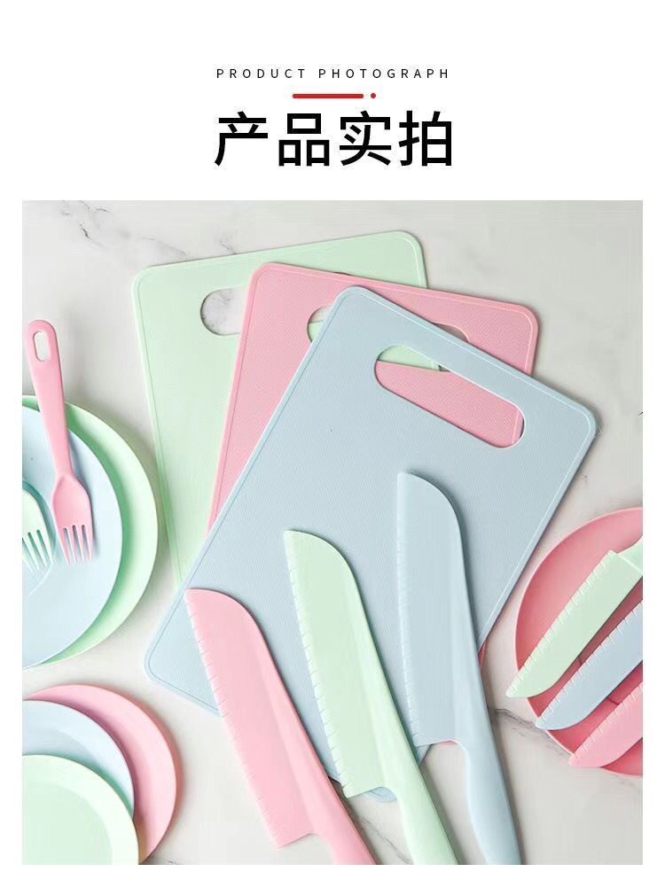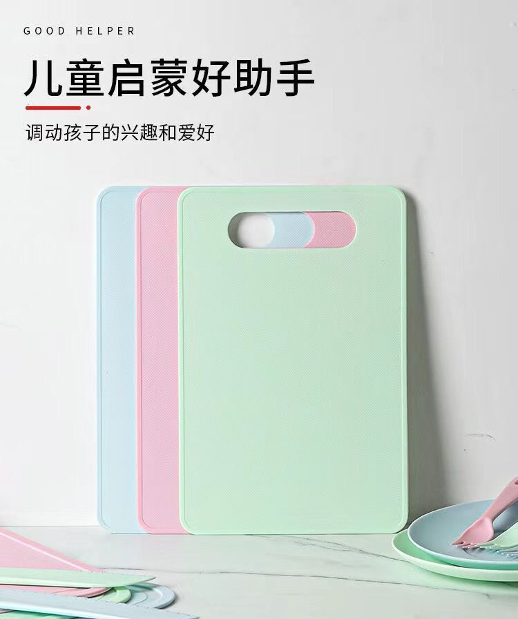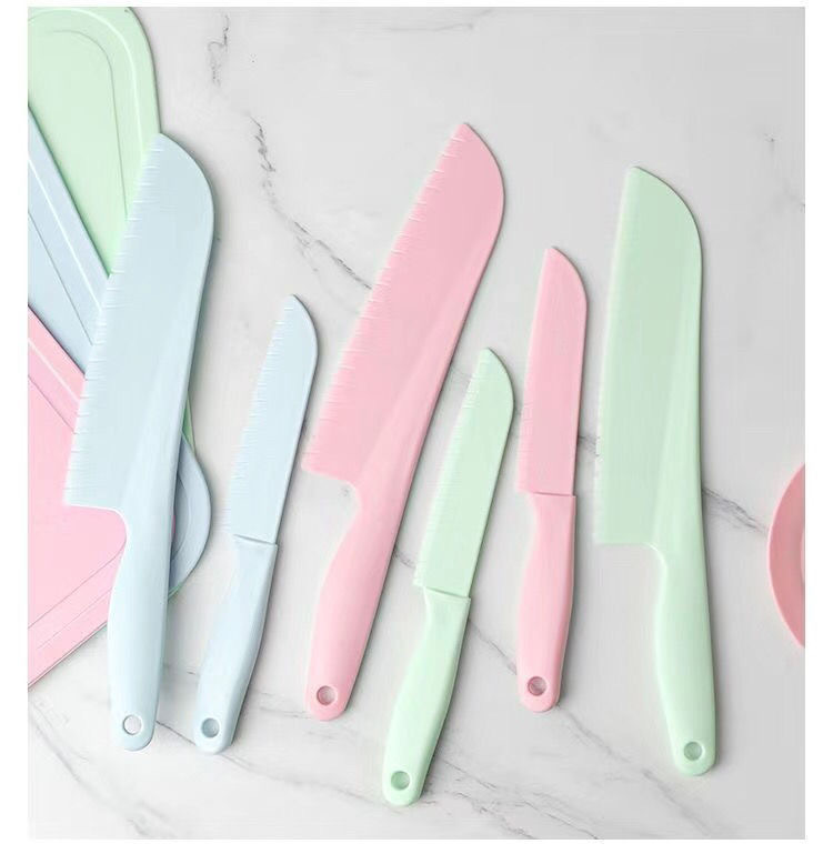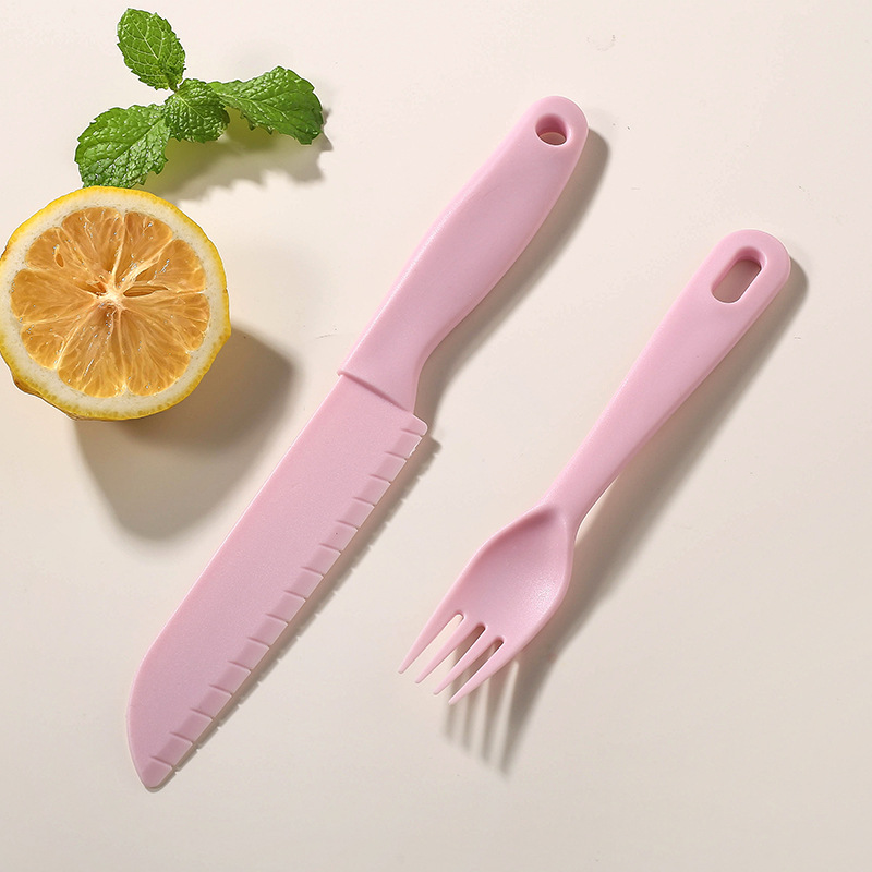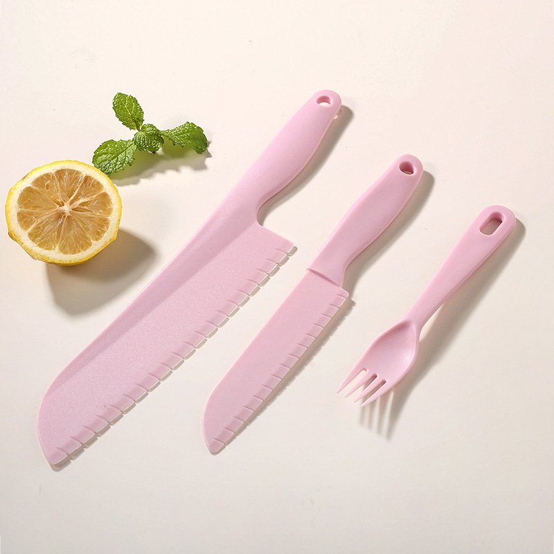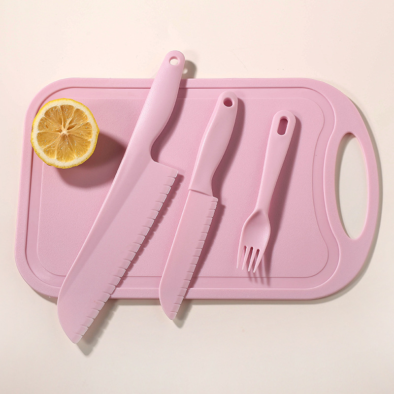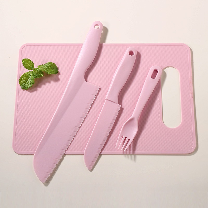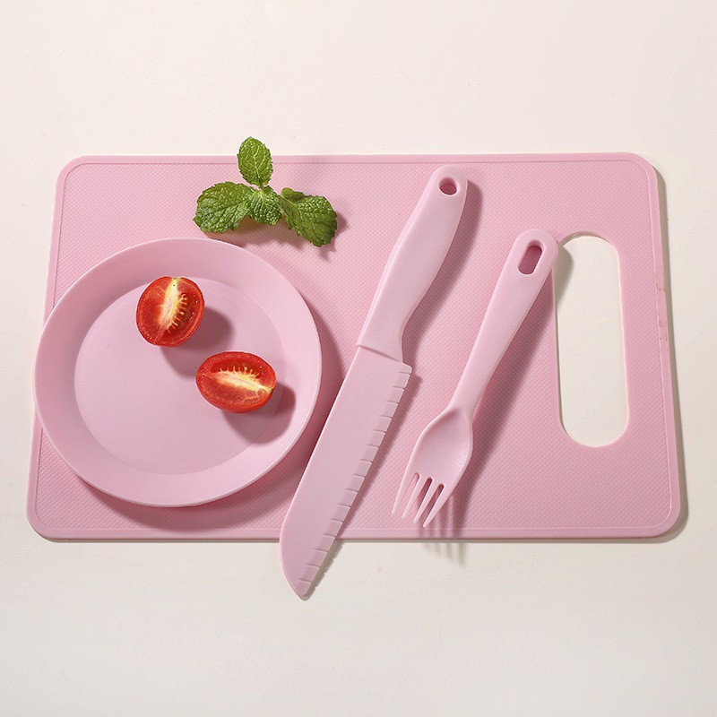 pink [big knife + small knife + fork + square cutting board]]