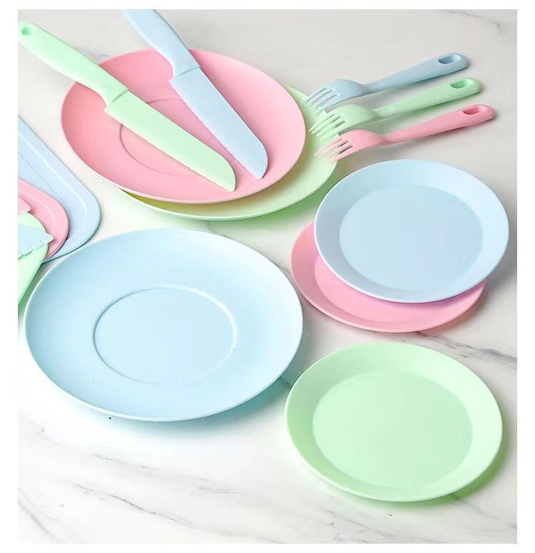 pink round plate six-piece set