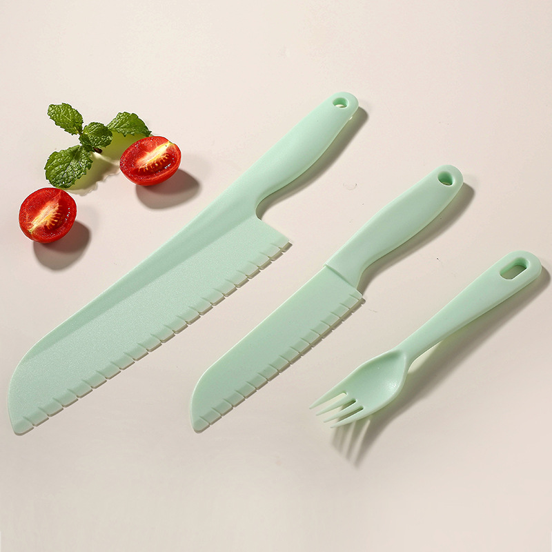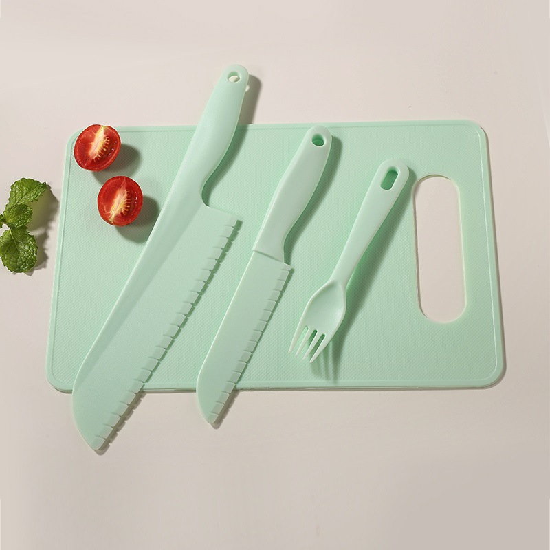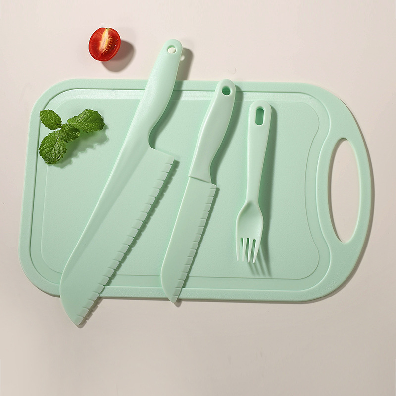 green [big knife + small knife + fork + square cutting board]]