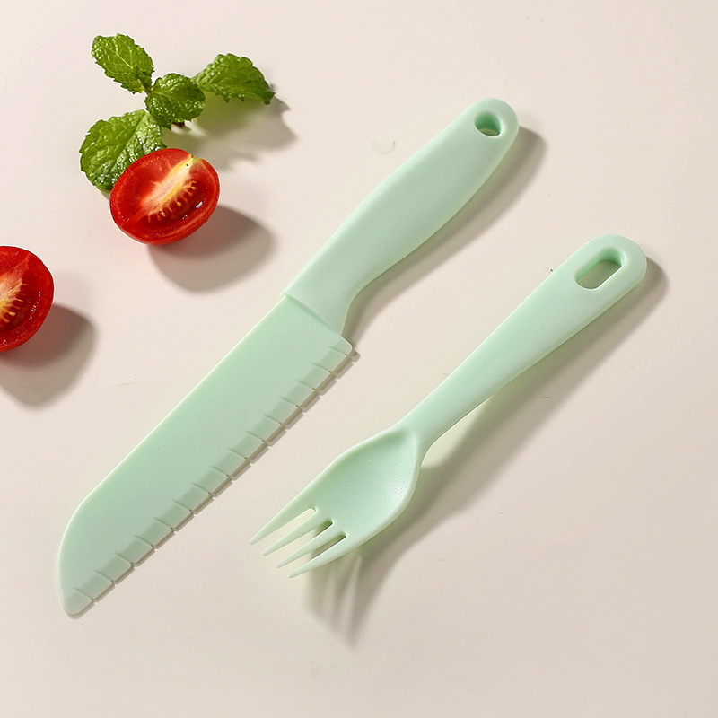 green [big knife + small knife + fork + round dishboard]]