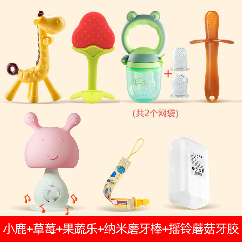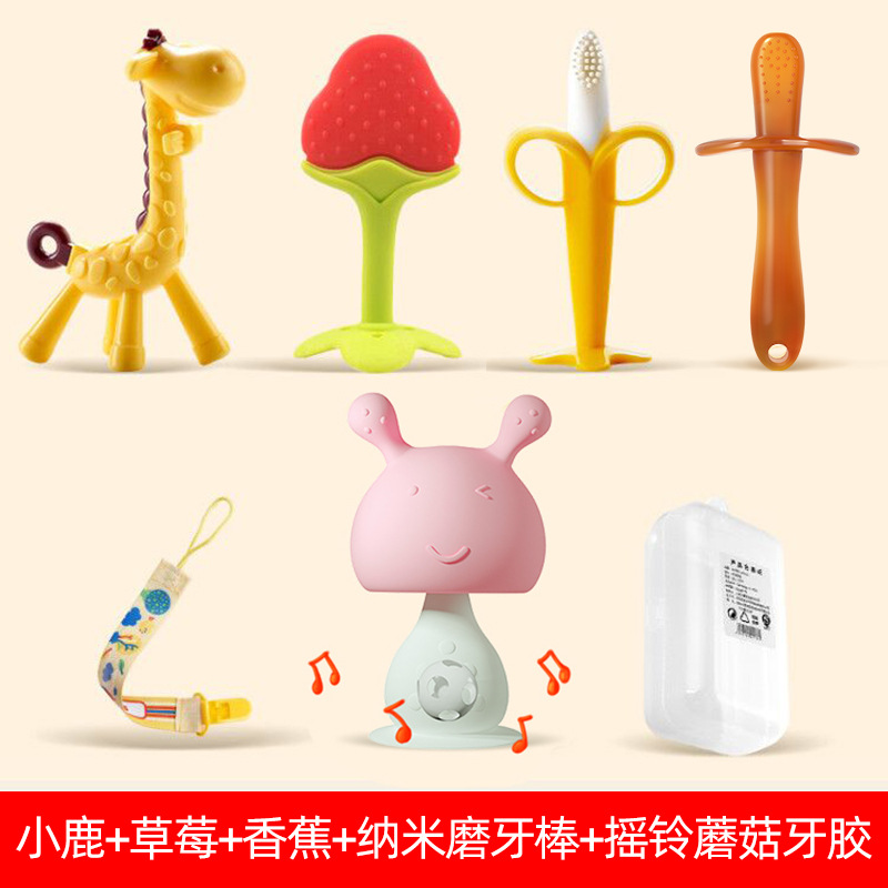 rattle mushroom (pink) + nano stick + banana + deer + strawberry + chain + box