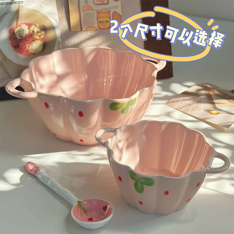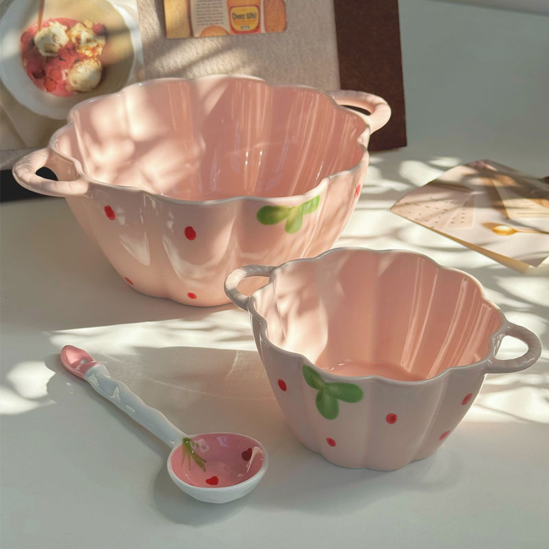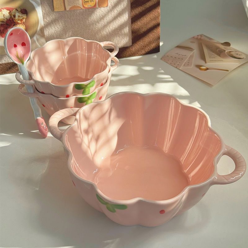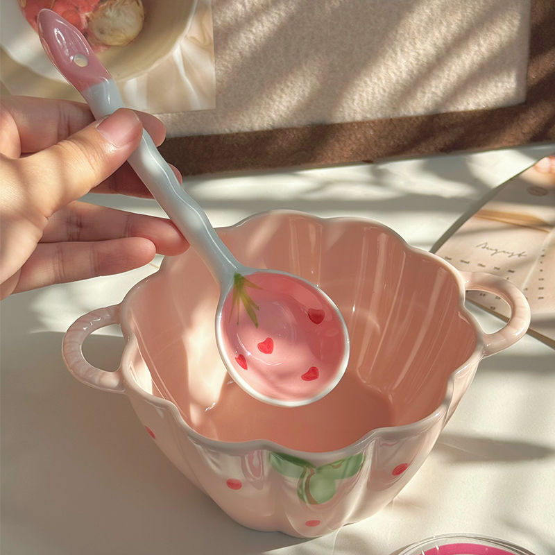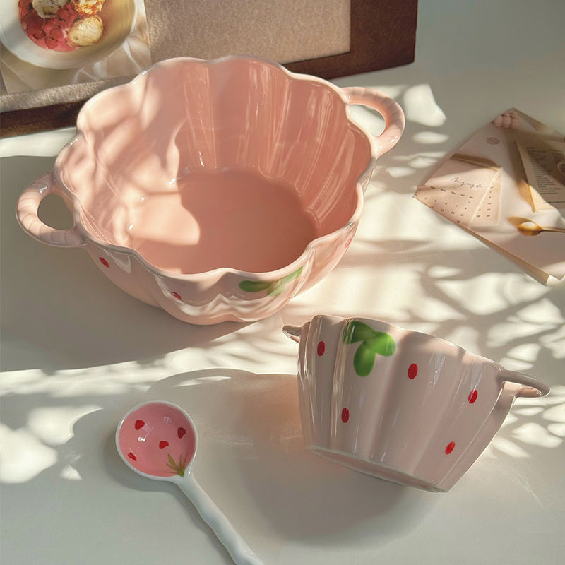 [girly heart] 5.5-inch strawberry double-ear bowl + spoon