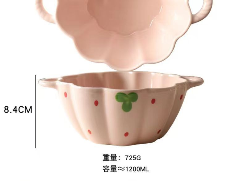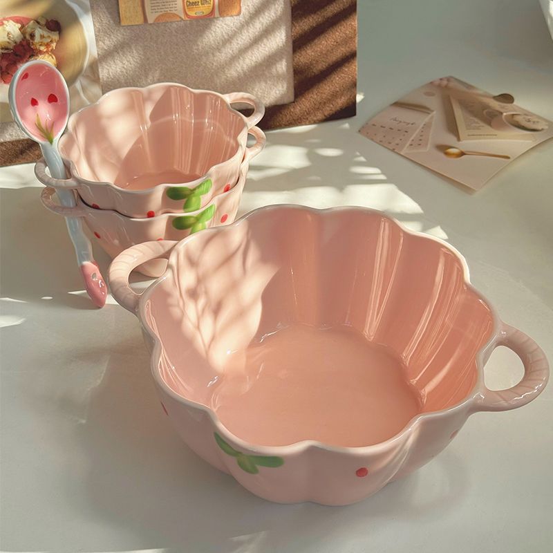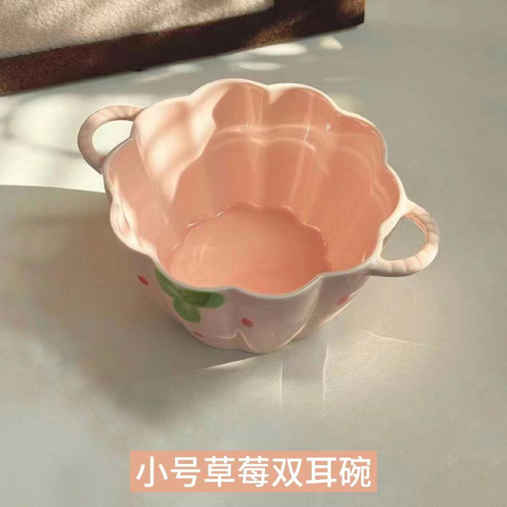 [girly heart] 5.5-inch strawberry double-ear bowl